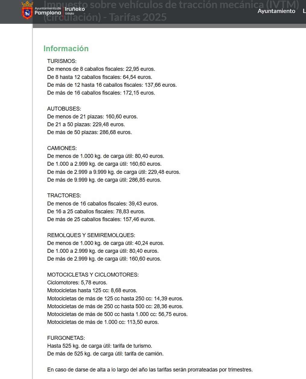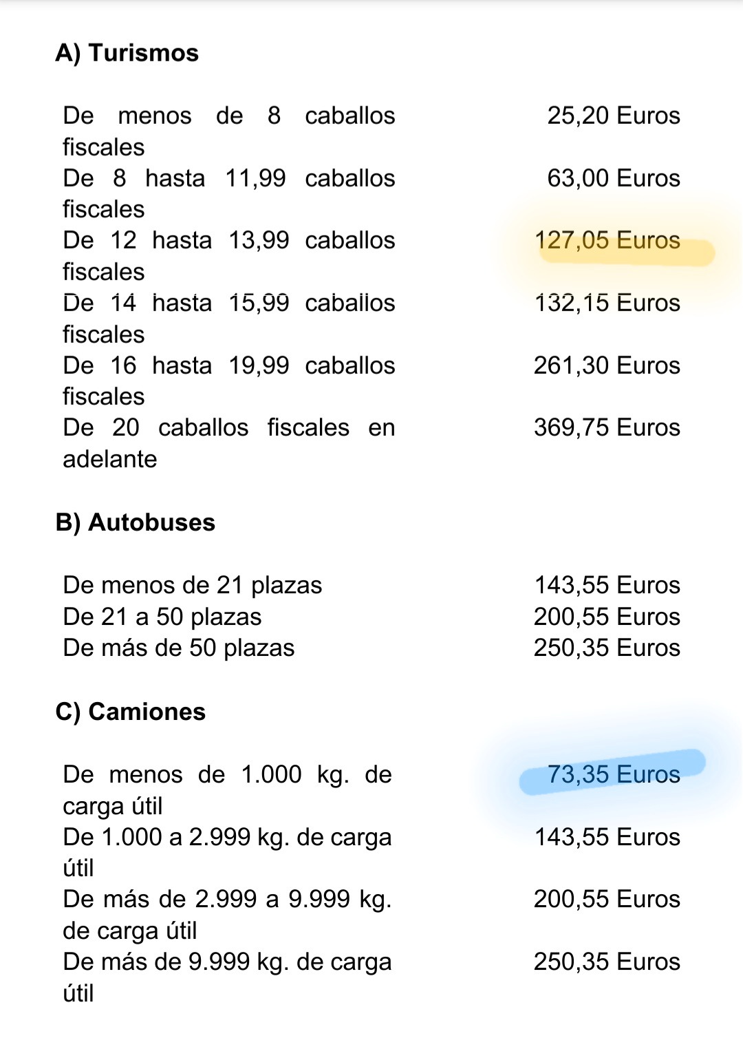 Como ves, la cuota de de la furgo (que es autocaravana) está en la sección de "camiones", no de turismos, en cuyo caso tendría que pagar 137,66 euros.