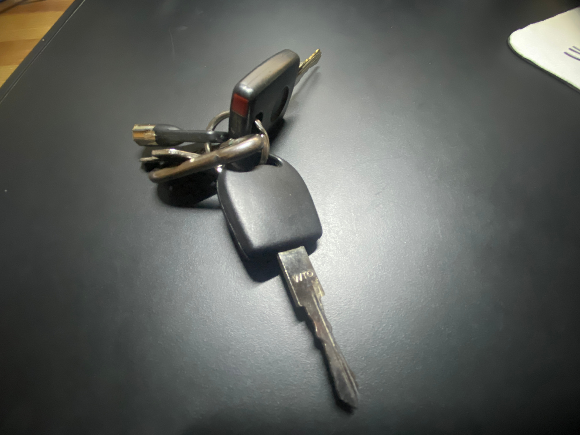 Puestos a pedir sobre el tema, os pongo unas fotos de las llaves de repuesto. Una tiene una pieza roja visible en la foto, ¿esa tiene el chip aunque sea descodificado?. La otra ( que es mucho más parecida a la original que uso normalmente)tiene una pequeña luz al presionar en el centro de ella y no sé si esta tiene chip o no .