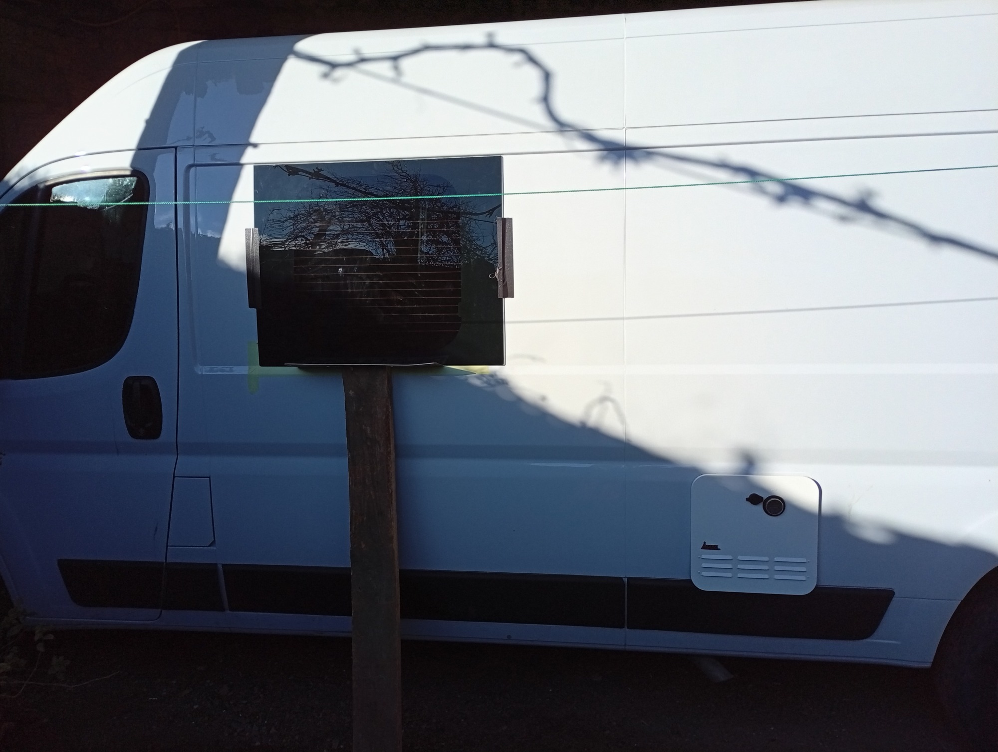 Puesta está realizado el hueco y puesto el cristal que irá junto a los asientos de la parte trasera. He reutilizado un cristal de las puertas traseras que me dieron y ha quedado perfecto.