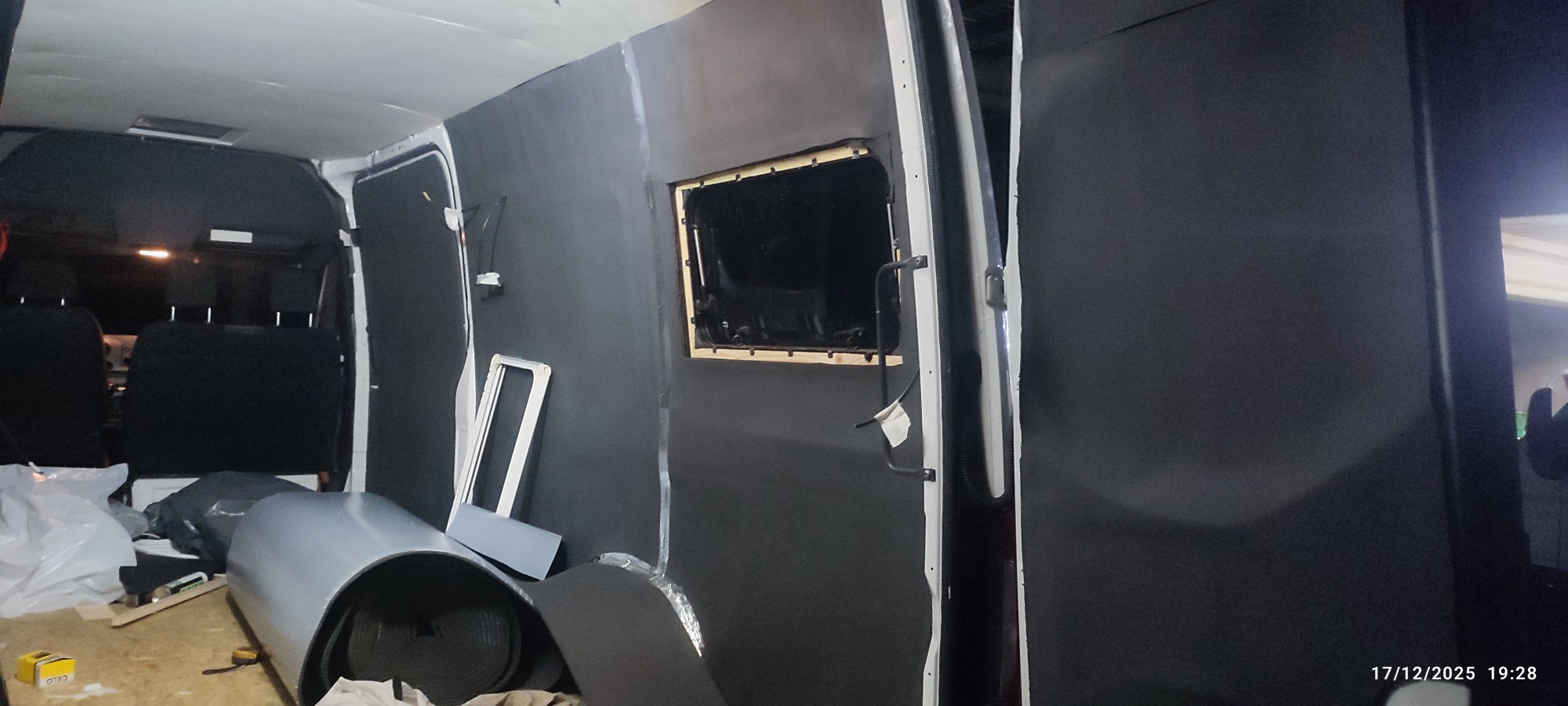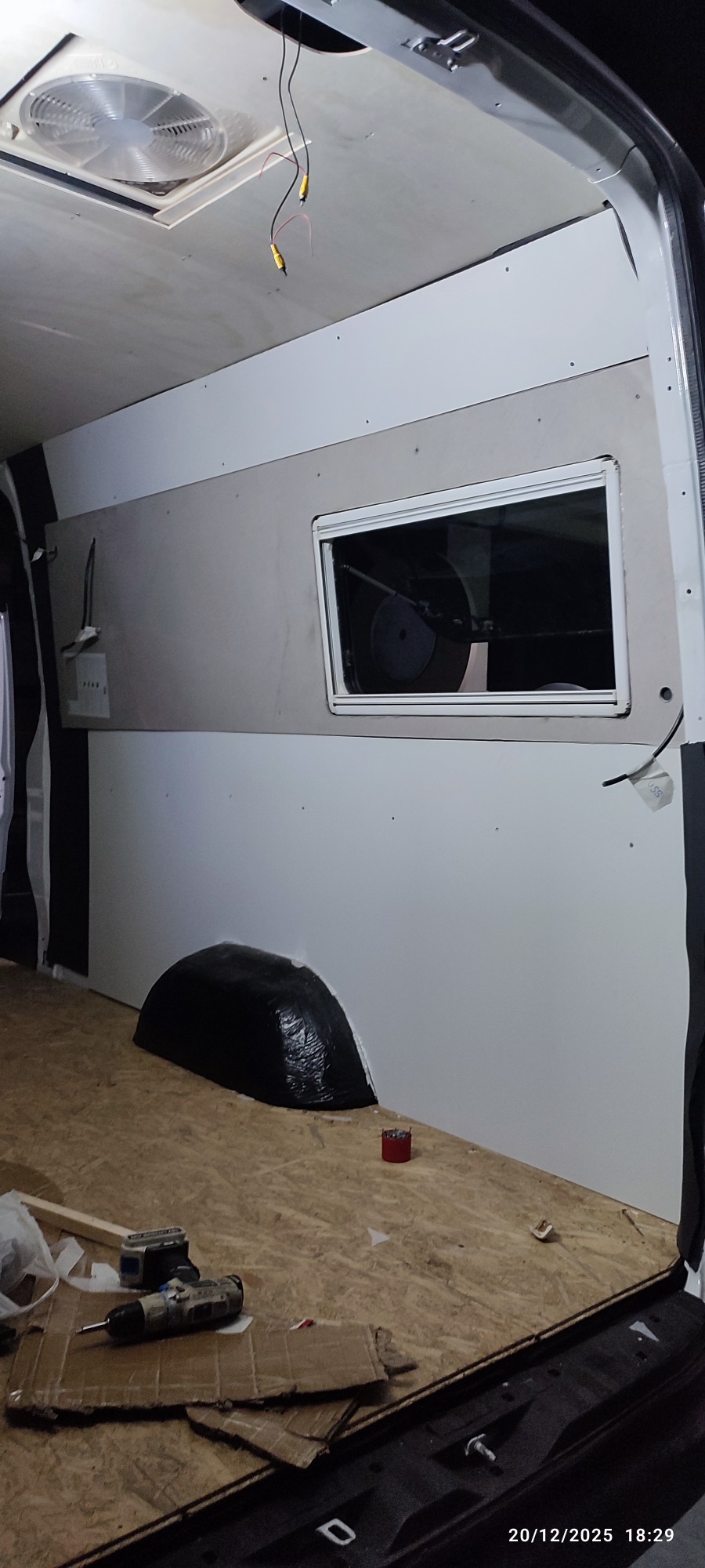 Además también he acabado de aislar el techo (5 cm de kaiflex), y presentado el contrachapado del techo a falta de algunos retoques.