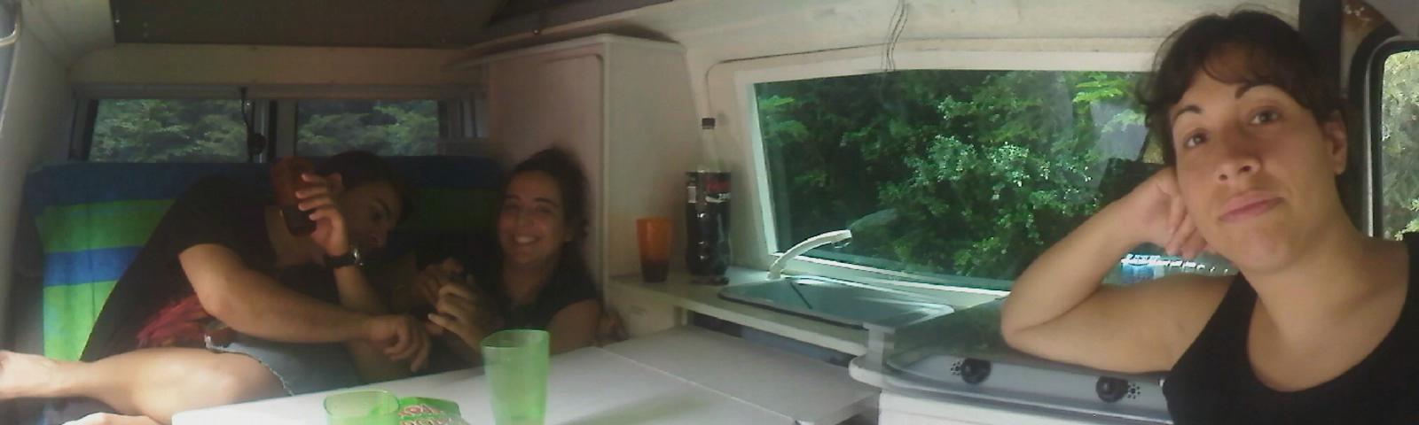 Aunque nuestros compañeros de viaje, tenian de campamento base una tienda de campaña, comprobamos que podemos sobrevivir cuatro personas en una furgo, más o menos dignamente, eso sí, de forma más perroflautistica...