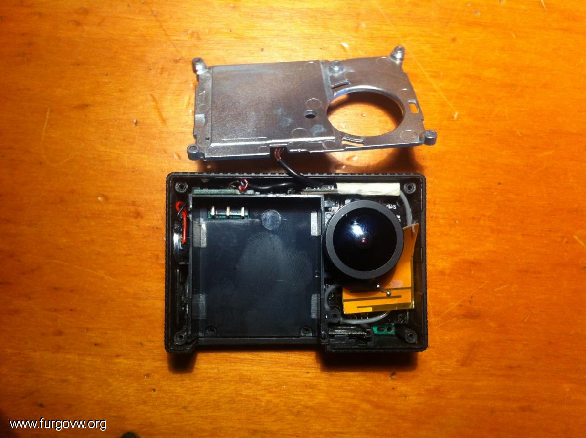 Para abrir la cámara, volvermos a quitar la tapa frontal(que sale con las uñas facilmente), quitamos los 4 tornillos laterales, y el central, y cuando  quitemos la primera tapa, sacamos la batería de su hueco. Una vez quitada la batería de su hueco, tenemos que quitar el plástico donde va la batería, que sale con 3 tornillos(2 a la vista, y uno en la parte de arriba, un poco escondido)