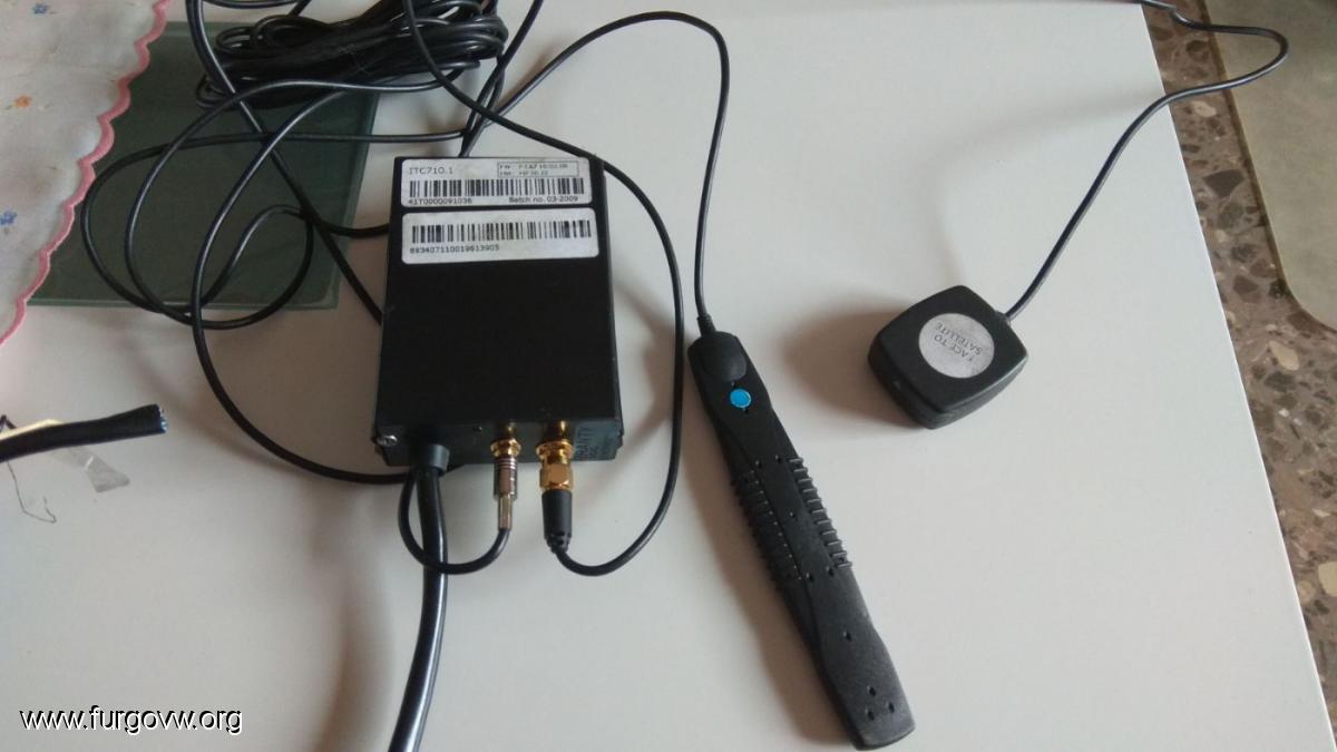 y me encuentro con una centralita a la que esta conectada una ntena GPS, y otra antena plana que no se de que es.