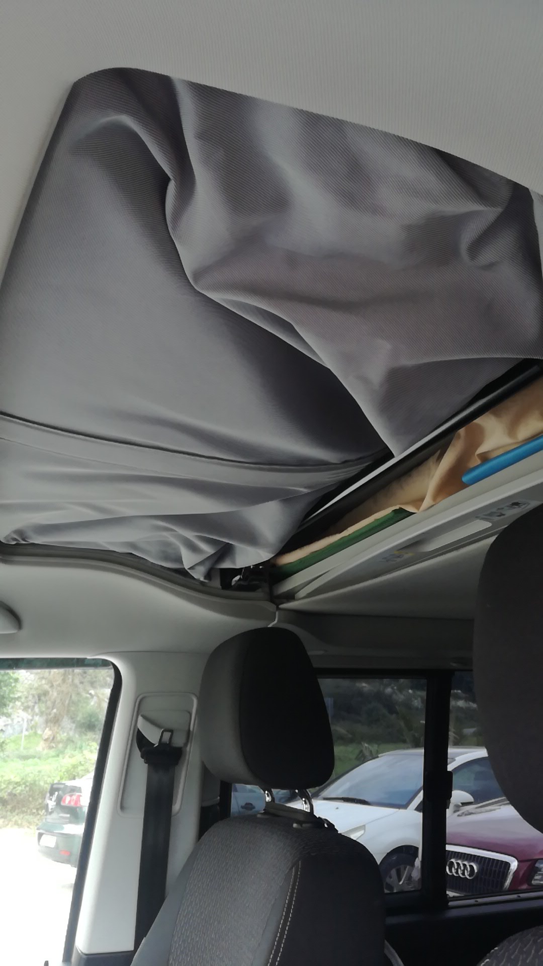 Equipamiento Camping vehículo: Homologada como Turismo. Asiento Cama + Flexi-Board,  techo elevable con somier de laminas + colchón de serie, toldo lateral de serie negro, sillas y mesa de serie, batería auxiliar, asientos giratorios delanteros, cortinas en todas las ventanas, calefacción estacionaria,  climatización trasera independiente (No A/C)