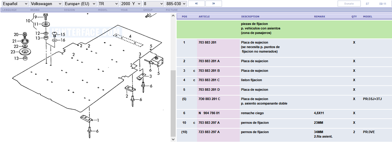 Yo para homologar el asiento cama de multivan necesité un despiece original(el del ETKA de vw) Luego para instalarlo en los agujeros originales con su tornilleria original y ojo tuercas originales que son unas pletinas con la tuerca incorporada que van en los bajos sujetas mediante unos remaches