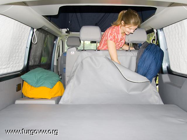 Sí, neidas, esa es la idea: si se lleva ahí la ropa de cama y cojines y edredones, como lo quitas para montar la cama, no molesta al bajar el asiento.
