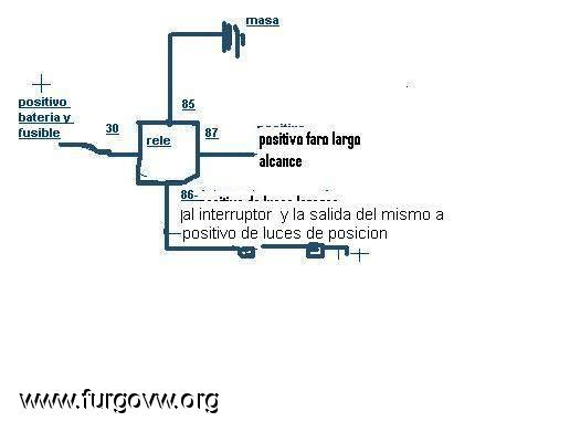 bueno, primero de todo el tema de donde sacar el positivo. A mi forma de verlo lo mejor seria sacarlo de la tabla de fusibles, podrias hacerlo del fusible de la luz de largo alcanze, no se que furgo tienes pero para una t3 se le podria poner el interruptor en el cuadro de instrumentos ya que tienen algunos huecos de sobra, para una t5 creo que es un poco mas complicado porque tienes que cambiar el comutador de luces normal por uno que incorpora otra posicion de la ruleta de accionamiento para que se encindan las luces.