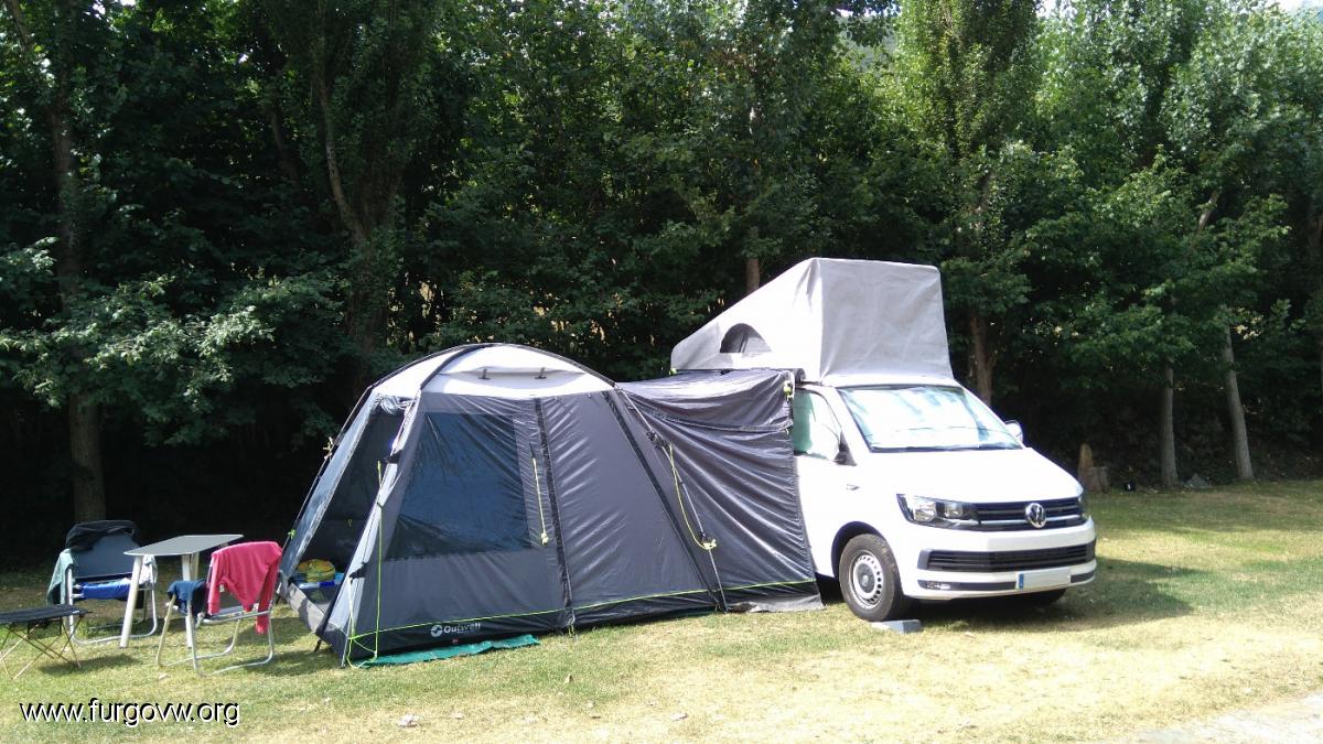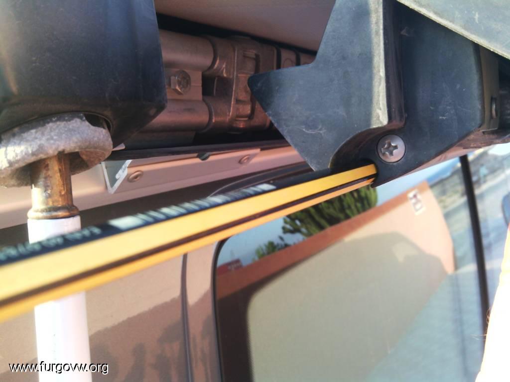 El problema es que el adaptador que une el avance y el toldo de la furgo no es facil de colocar, no 'desliza' bien, así que cuesta mucho ponerlo y quitarlo. Lo pusimos solo un día, luego inventamos otra forma de sujetarlo al toldo. La idea consiste en abrir un poco toldo, lo mínimo y por la parte superior del todo encajamos directamente la parte del avance que encajaría en el adaptador. Luego cerramos el toldo y el avance queda pillado.