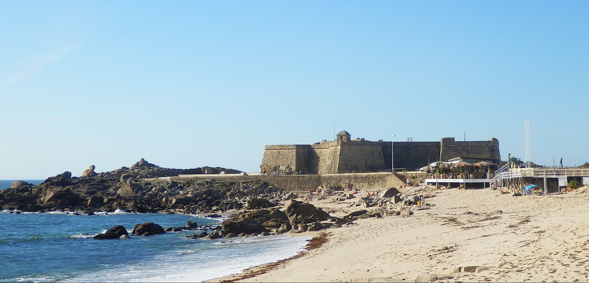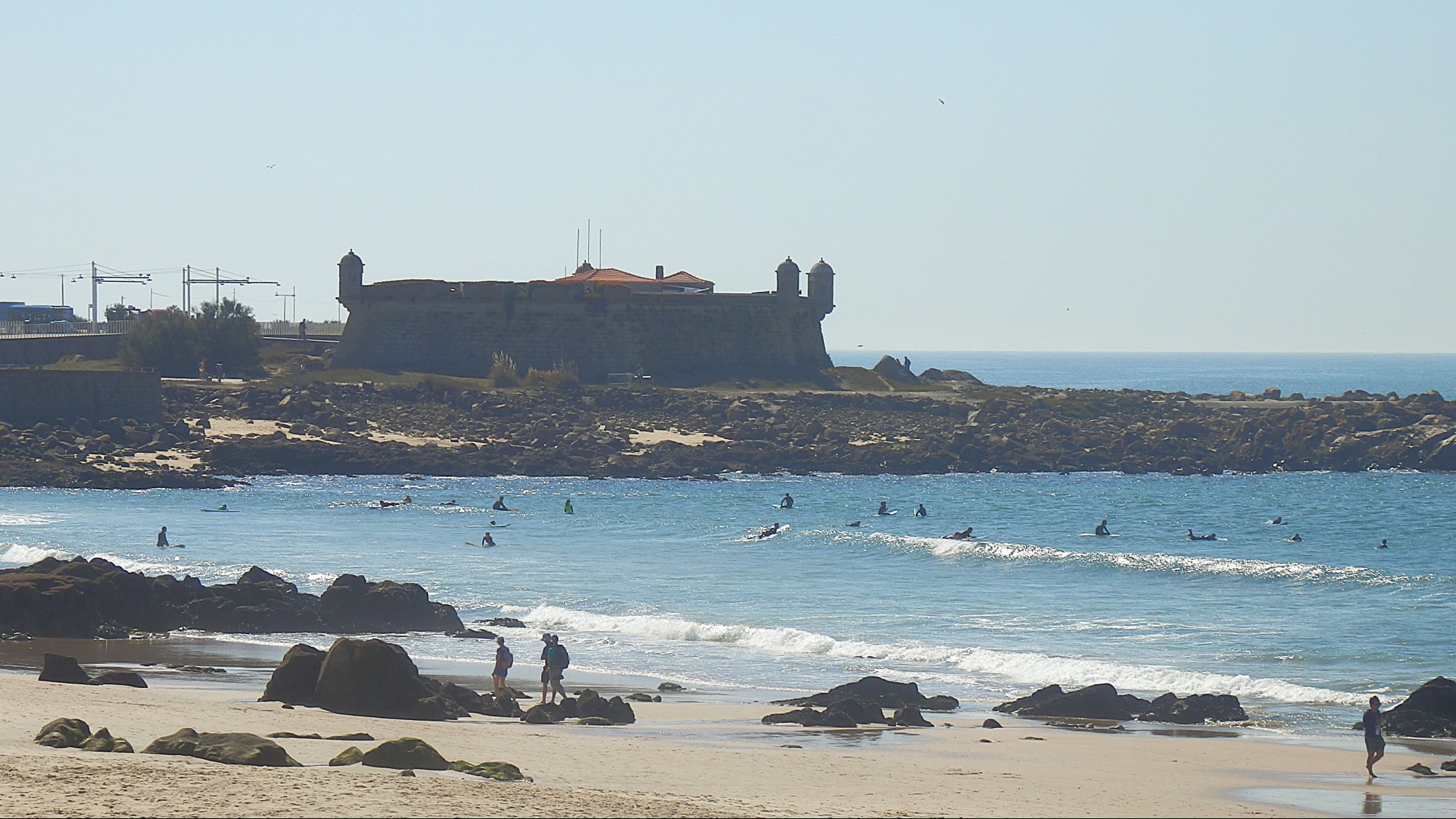 Abandonamos el parking en el que nos hemos alojado estos dos días, y salimos, bordeando la costa rumbo norte empezando por Foz do Douro, en la desembocadura del Duero. Aquí se puede visitar el Fuerte de São João Batista, una estructura del siglo XVI construida para proteger la entrada por el mar a la ciudad.
