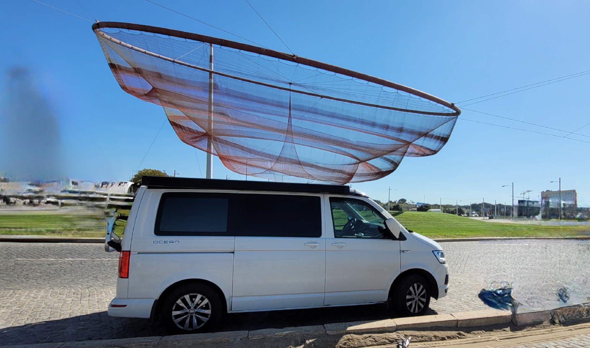 Seguimos costeando hacia Matosinhos, con hermosas vistas desde el paseo marítimo, destacando (al menos para nosotros) una curiosa rotonda formada por una especie de redes sostenidas sobre un anillo de acero que flotan sobre él, recordando a una anémona. Simboliza la antigua relación entre las ciudades de Oporto y Matosinhos y la industria marítima. Resulta realmente curiosa.