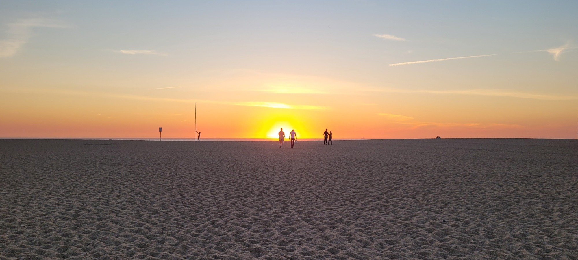 Vemos la puesta de sol sobre la playa, tomamos un helado y nos recogemos a descansar junto al supermercado Continente donde hay un aparcamiento gratuito para autocaravanas, y con posibilidad de usar el cuarto de baño del súper. Está aquí:  41.394006, -8.754266.