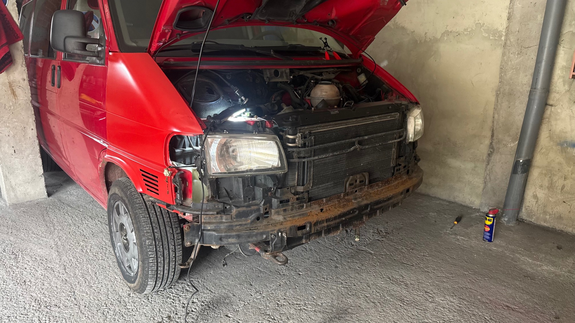 Hay algo que me olvidé comentaros... Antes de comprar la mía estuve mirando un Caddy, pero no me convencía por el tamaño --somos mi pareja y mi perro, también estuve echando un ojo a la mítica Renault Trafic y la Opel Vivaro, pero al final me lancé a por la T4. Me encanta el diseño, aunque tengo tantas cosas que hacerle que ya casi puedo abrir un taller propio...