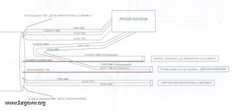 4.- 1 gordo marron que se une a otro marron fino del programador con la misma numeración y van unidos en un faston de plastico rectangular y no se si son masa a chapa o negativos???