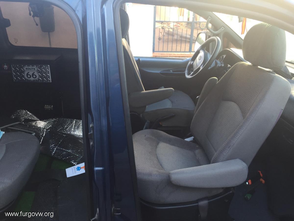 Culpa mía el no sacar fotos del proceso,  en mi furgo quite un asiento giratorio trasero para ganar espacio, quite las guías del asiento del suelo, para ponerlas delante y no fueran tan largas y cantoras, decidí recortarlas unos centímetros, quite el asiento delantero, destape la tapicería del suelo que va debajo del asiento y el aislante que lleva, fue al herrero para que me hiciera una placa de hierro de una medida que cubriera los cuatro agujeros a los que va atornillado el asiento y atornille la placa al suelo, después en esa placa hago los agujeros para poner los raíles del asiento trasero y lo fijo con tornillos y tuercas de bastante grosor, no sé si me he explicado muy bien, en cuanto pueda cuelga fotos para que veáis como ha quedado y no se nota apenas la modificación.