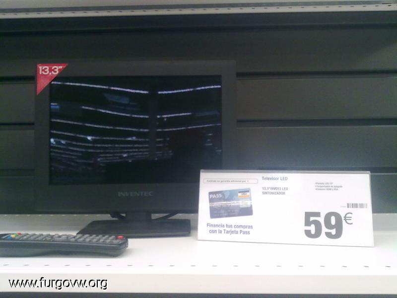 ESCRITO POR PARCHIIS EN EL HILO TV led varatas para nuestras furgos: jejeje, esta tarde me he comprado la TV del Carrefour a 59€ -TV LED 12v INVENTEC 13,3"- (ojo que la han subido a 99€, yo la he conseguido sacar a 59€ acogiéndome a que en uno de los stands aún ponía el precio de 59€ -en los otros dos marcaba 99€ y tras de mi han quitado el primero-).