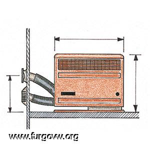 Tienes que poner en el lateral, justo detrás de la calefacción una salida de gases y una admisión de aire... Es una calefacción de combustión por lo que necesita oxígeno que quemar con el gas y expulsarlo sin matar a nadie..