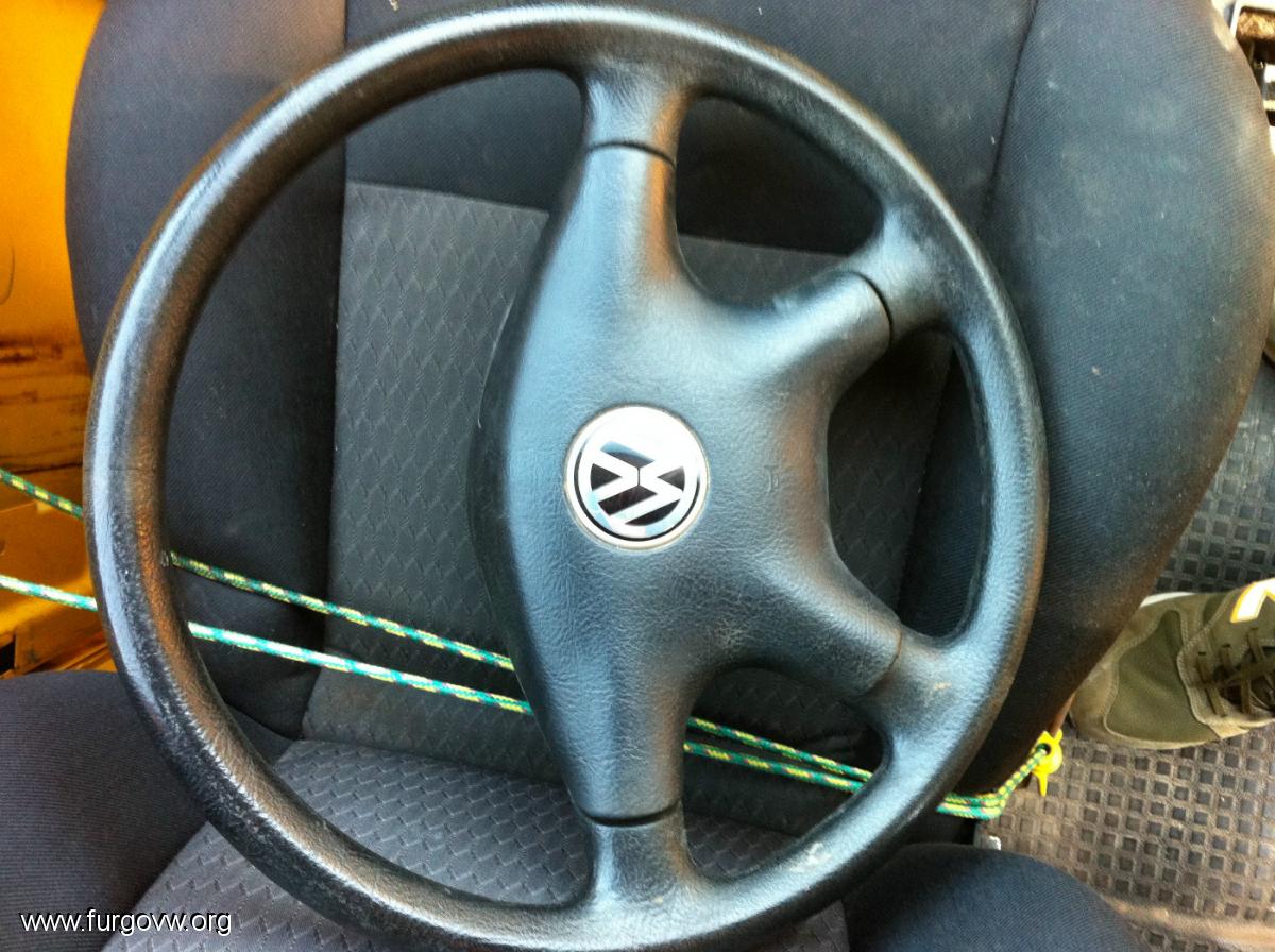 Yo también desistí. Mi T4 es del 91 y en un principio mi obsesión era un volante de un Golf III GTI: imposible, no coincidía la piña. En el desguace me lo cambiaron por otro de 4 radios de un Golf II: la piña coincidía pero ni los intermitentes ni el claxon iban a la altura, así que tengo puesto el original "tamaño camión" aunque lo forré de piel.
