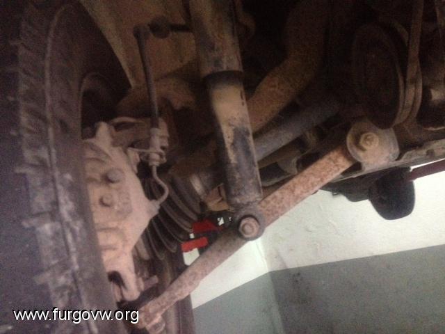 Al levantarla se observó que los amortiguadores delanteros estaban muy mal y que presentaban holgura el la sujección inferior. y también se han sustituido.