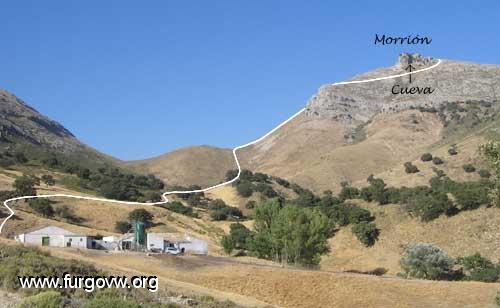 Una vez en Mahina divisaremos a la derecha distintos hitos de piedra que no nos dejaran hasta llegar a la Tiñosa, emprenderemos la subida por el zigzagueante sendero pedregoso hasta llegar a la cueva del Morrión, cueva que es usada para el resguardo del pastoreo de la ganadería ovina que abunda por la zona.