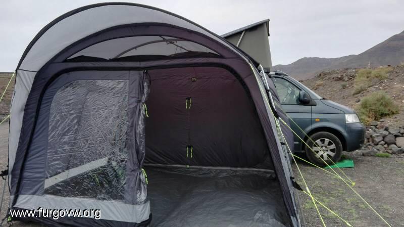 Hola, yo estuve buscando por internet algo para cerrar el toldo de mi T5 y al final opte por comprar un avance,me salia mas barato que comprar el cerrado del toldo omnistore y ganaba mas espacio. Lo acoplo al rail del toldo, se queda un poco separado de la furgo pero me da igual. Es de la casa outwell y el modelo country road, en ebay me costó 450€ puesto en canarias,envio y aduanas,aqui van unas fotitos del invento[img]