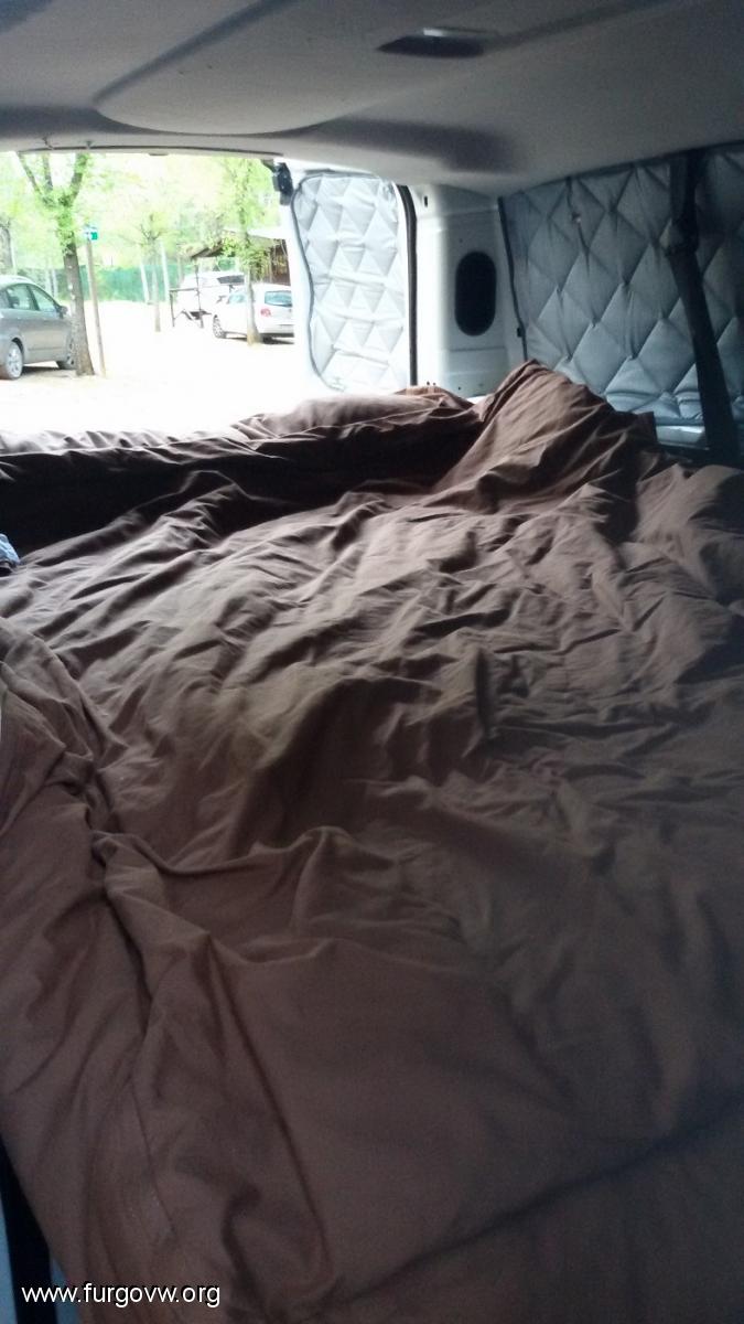 Despues cambiamos las mantas que eran un poco latosas por un saco nordico adquirido en una compra conjunta en el foro,  ganamos un monton en comodidad, segun la epoca del año le metemos uno o dos rellenos lo que nos permite sair en invierno sin llevar calefa, hasta ahora jamas hemos pasado frío
