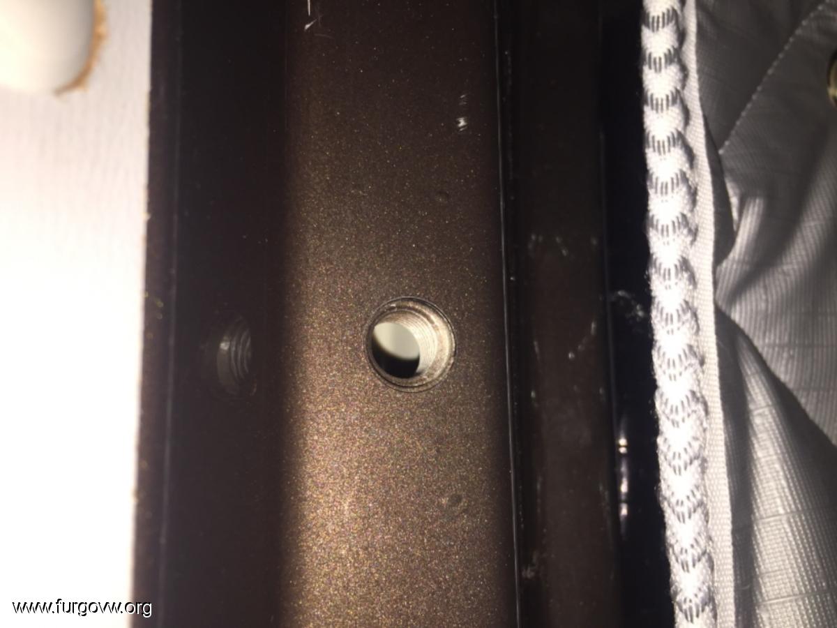 Y este es el agujero, he medido con pie de rey y es del 10. Ire mirando opciones, la idea es poner una en cada lado y evitar hacer otro agujero en la chapa para poner la tipica barrita tipo cortina...