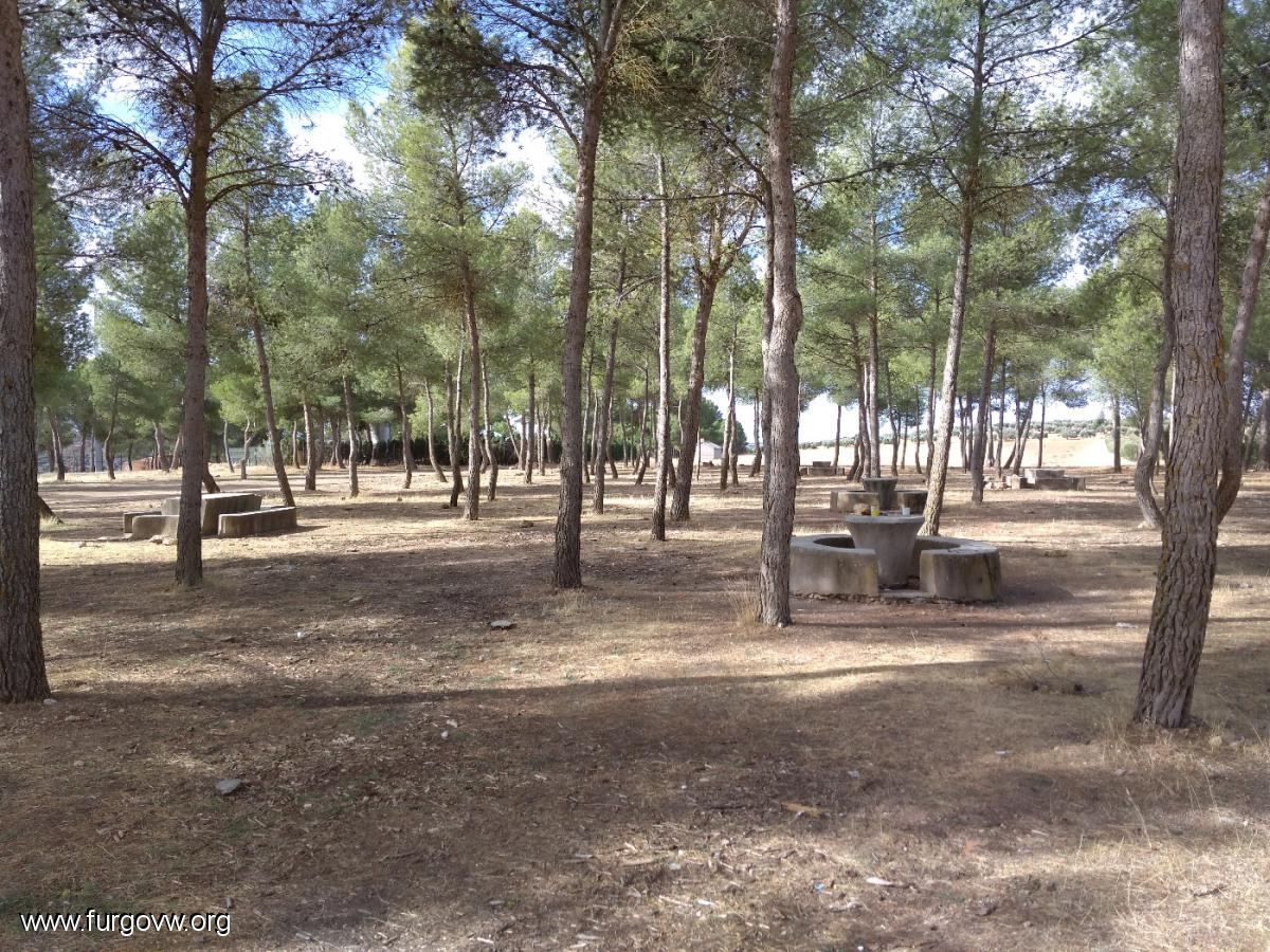 Descripción de la zona:  Parking en un pinar en un extremo del parque natural de las lagunas de Ruidera, en el que dejan pernoctar. En el centro de interpretación nos lo indicaron, en el mismo centro hay wc's y duchas, el encargado (muy amable) nos dejo usarlas. Hay una zona de picnic y una fuente. La visita al castillo es gratuita.
