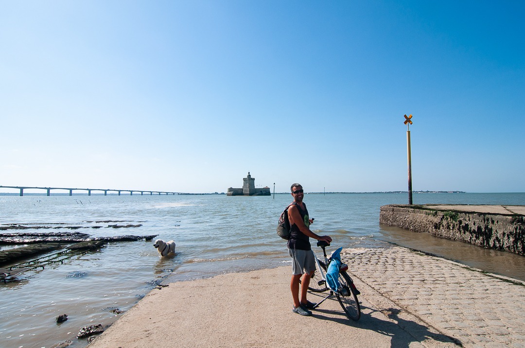 Aparcamos en el parking del casino. Somos gente con clase y se nota (sobre todo en mi camiseta de tiras y mis crocs). Descansamos un poco, tomamos un descafeinado, cogemos las bicis y nos vamos a la punta de la Fumee. Zona de cultivo ostrícola y casetas de degustación. Desde aquí se ve la isla de Aix, el Fort Enet y el famoso Fort Boyard. En su día, cuando era pequeño (no hace mucho) en la tv francesa echaban un concurso de diferentes pruebas que se hacían en el interior de este fuerte. Con los años, no sé qué cadena española, compro el formato del concurso... Si me enrollo me decís, eh...jajajaaja