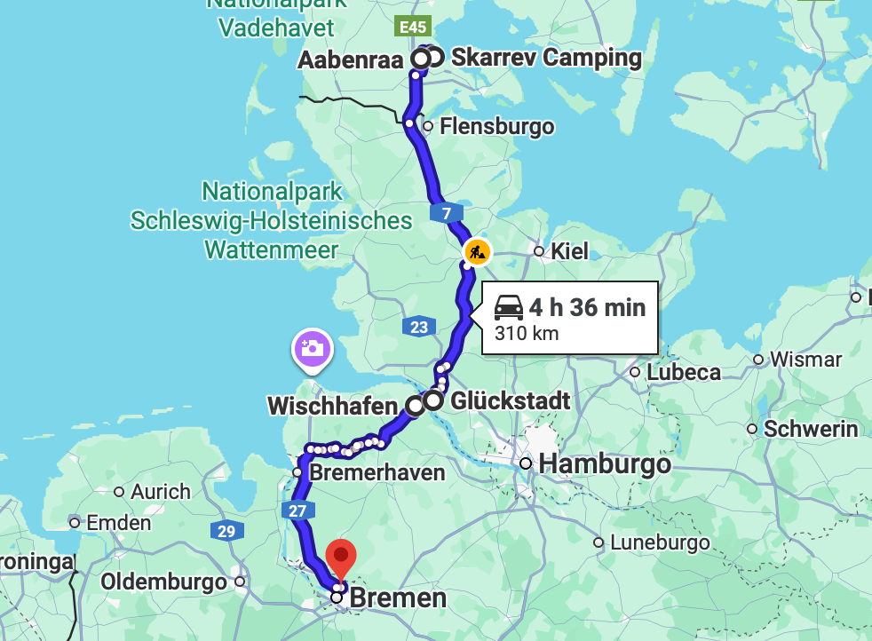 Hoy toca un cambio en la ruta que he tomado otros años por tierras germanas. Harta de atascos y obras infinitas en la zona de Hamburgo, me dirijo a cruzar el Elba en un ferry, de Wischhafen a Glückstadt. Así que me dirijo dirección Osnabrück, Bremen y Bremerhaven.