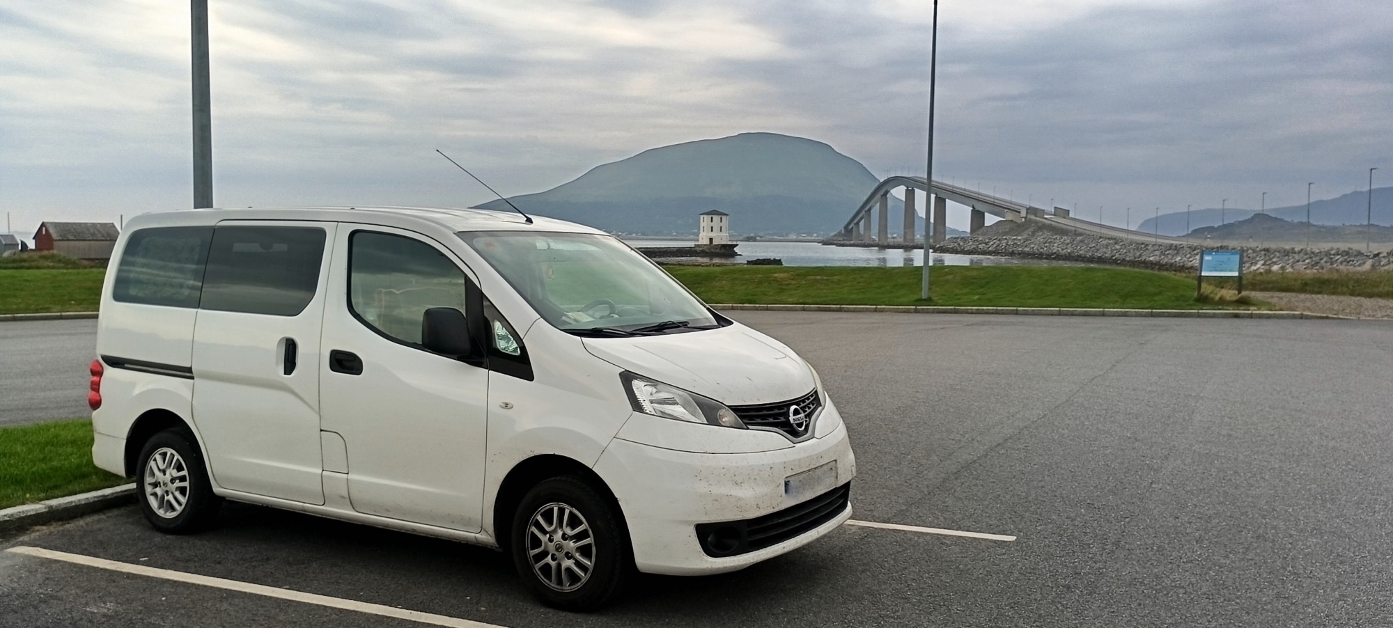 Vuelvo a la furgo y continuo viaje. Cruzo el primer puente, el Lillebælt, para llegar a Odense y luego, antes de cruzar el Storebælt, paro en el area de descanso a darme un paseo y sacar unas fotos del puente. Hay sol y cielo azul pero las nubes son de lluvia y me temo que lloverá.