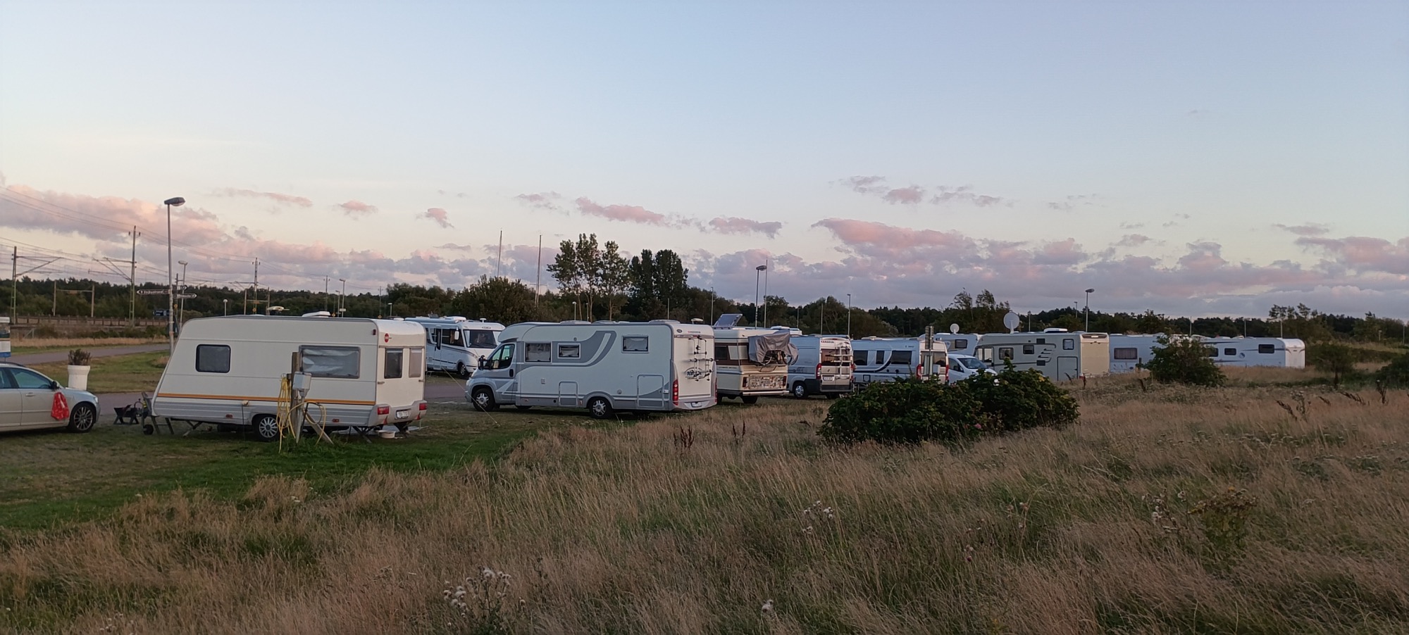 Al rato llega la dueña, pago 250 SEK,  me instalo en el prado y me conecto a la electricidad, no sin problemas.