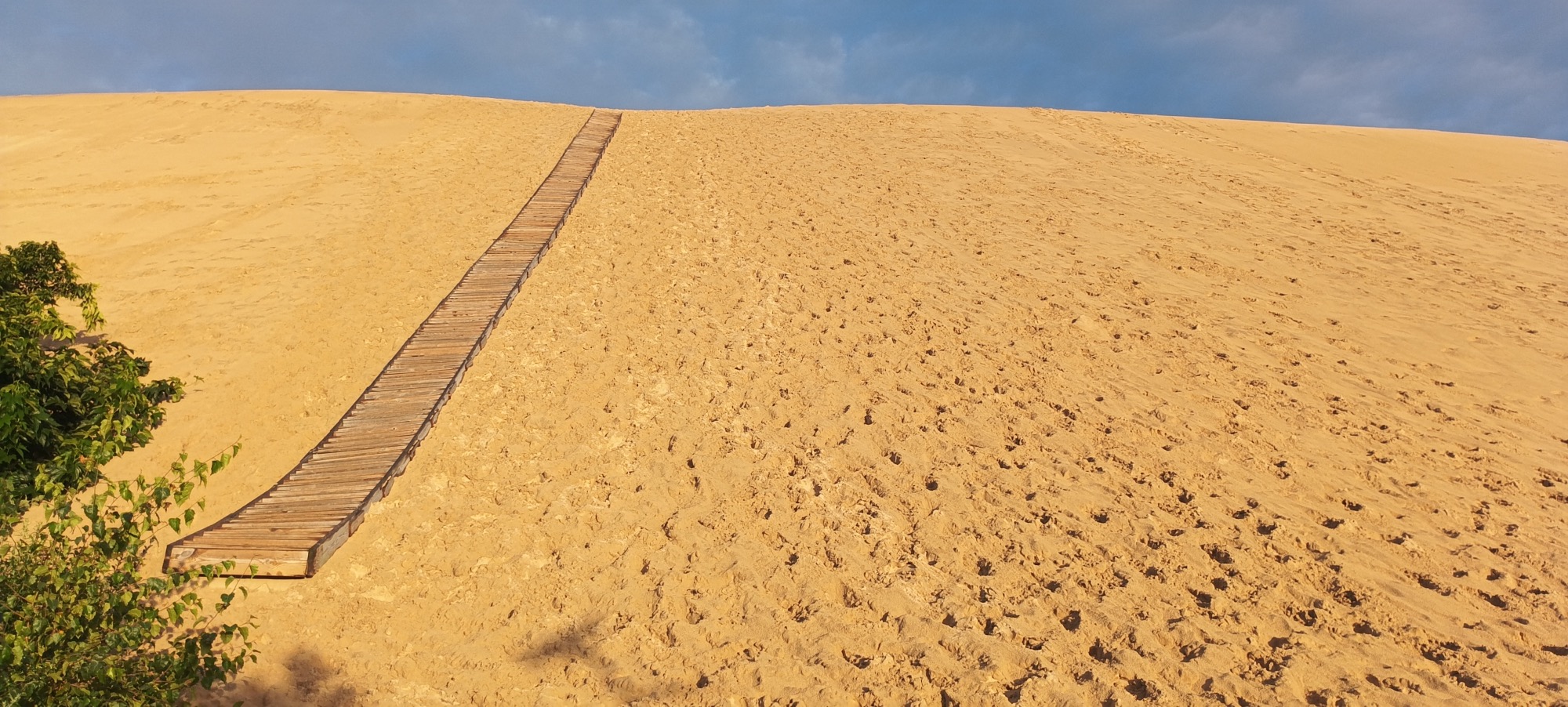 La duna por su parte, ha ido avanzando y han desaparecido las parcelas más cercanas a la arena. Me topo con las escaleras y subo.Son las nueve de la noche, asi que me da tiempo a subir y disfrutar de las vistas.