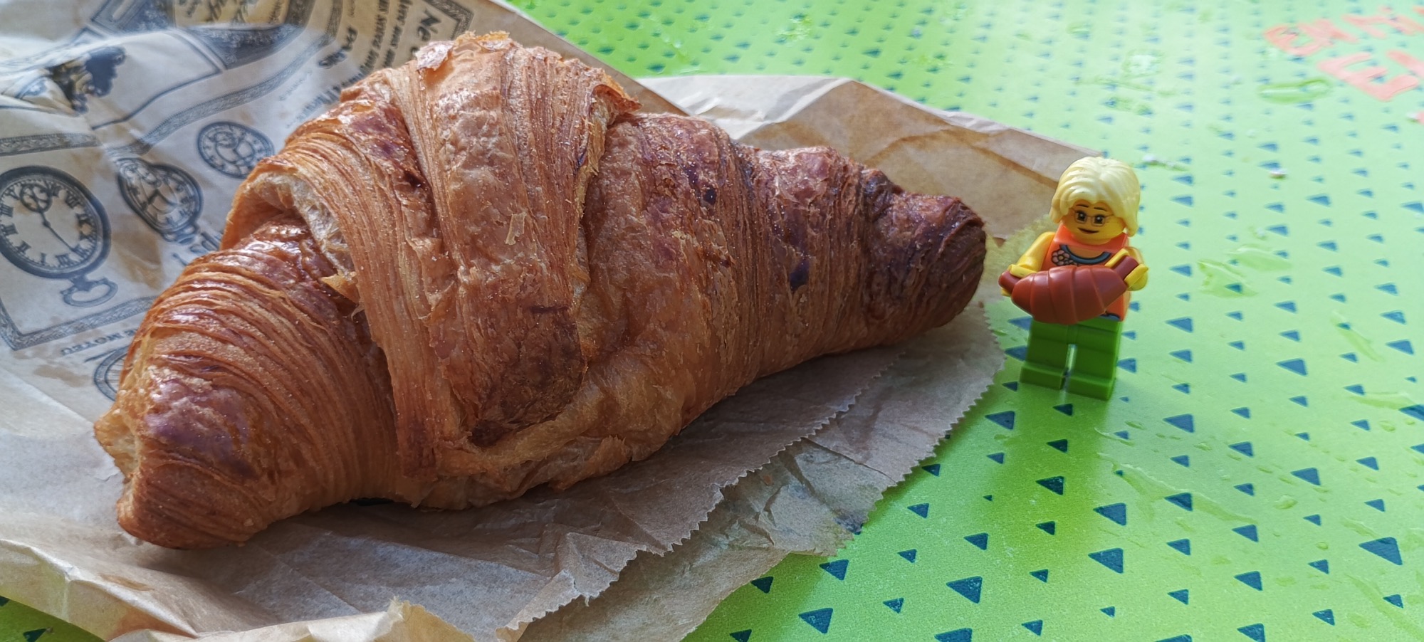 Paro a comprar un par de croissants en una panadería. No he desayunado y me muero de hambre.