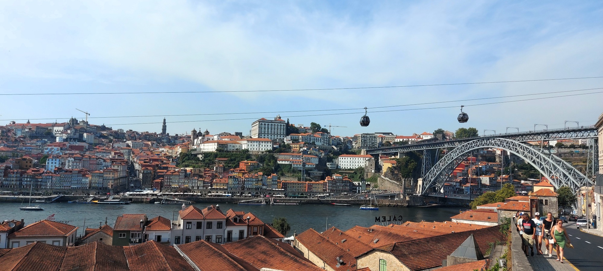 Hoy Oporto es un destino turístico de primer orden. Creo que esta es la quinta vez que lo visito, y cada vez que vengo hay más gente por sus calles. Así que, durante la comida, decidimos hacer un plan de ataque y evitar ir a Porto. Conocemos de otras visitas que el tráfico en la ciudad es bastante caótico y estresante. Lo que poca gente sabe es que Porto está únicamente en la margen derecha del Douro; al poner "Porto" en el navegador, te lleva directamente al caos circulatorio del centro histórico de la ciudad. En la otra margen, Vila Nova de Gaia, aunque es igual de urbana y el tráfico sigue siendo "portugués", puedes tener más suerte de encontrar aparcamiento y llegar al centro de Oporto paseando en pocos minutos.