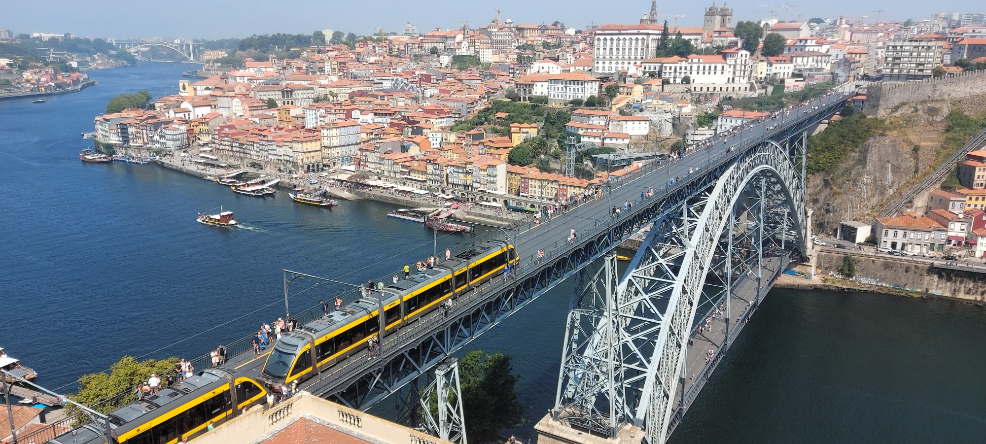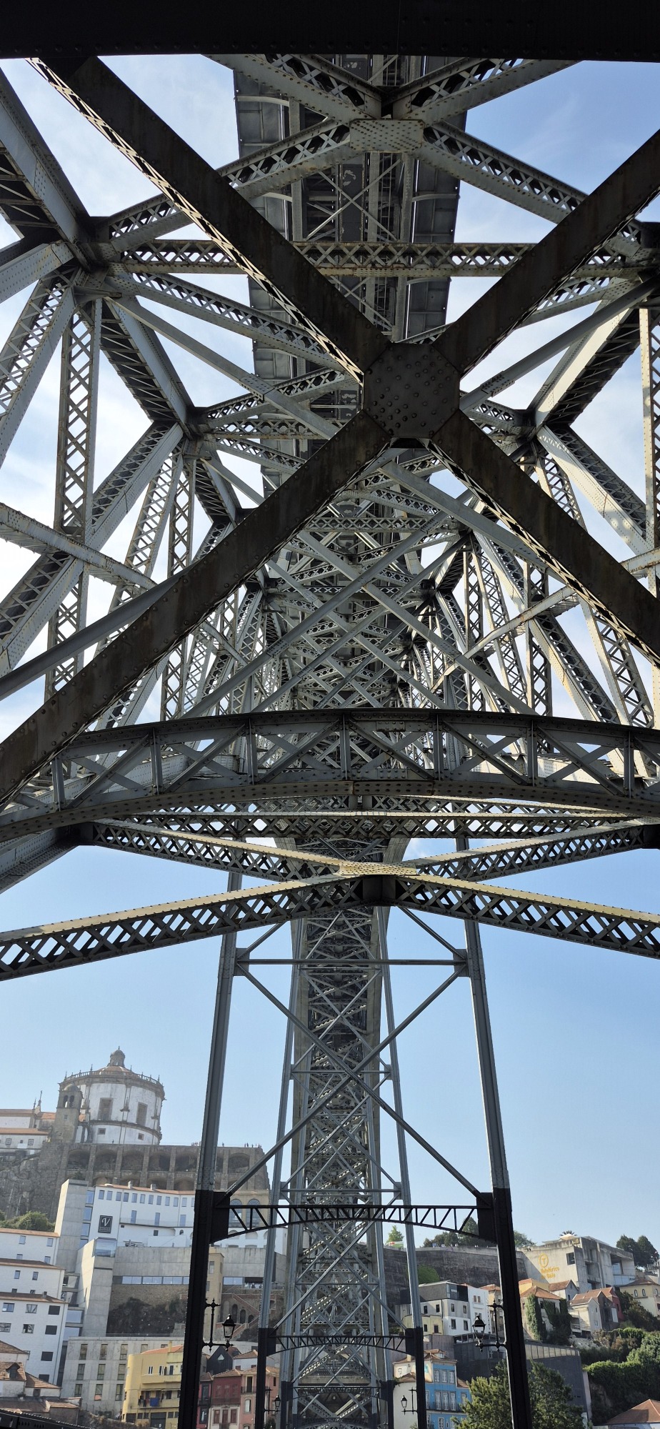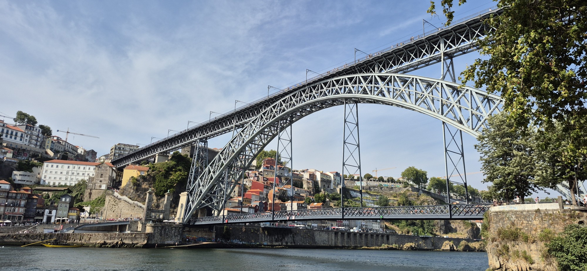 En menos de 5 min desde el parking te plantas en la parte baja del Puente de Luis I, posiblemente lo más famoso y fotografiado de la ciudad. No hay que saber mucho de historia de la arquitectura para darse cuenta de que fue diseñado por un discípulo de Eiffel y se inauguró en 1886. Su característica principal es que son dos puentes en uno: se puede cruzar por arriba y por abajo. Esto se explica por la propia orografía de la ciudad. Se puede decir que hay dos Oportos: la zona portuaria abajo y la ciudad monumental arriba. Hoy la parte alta es peatonal, por lo que por arriba solo se puede pasar andando o en tranvía. Por la parte baja, a pesar de la cantidad de turistas que cruzan sin parar, aún pasan coches.