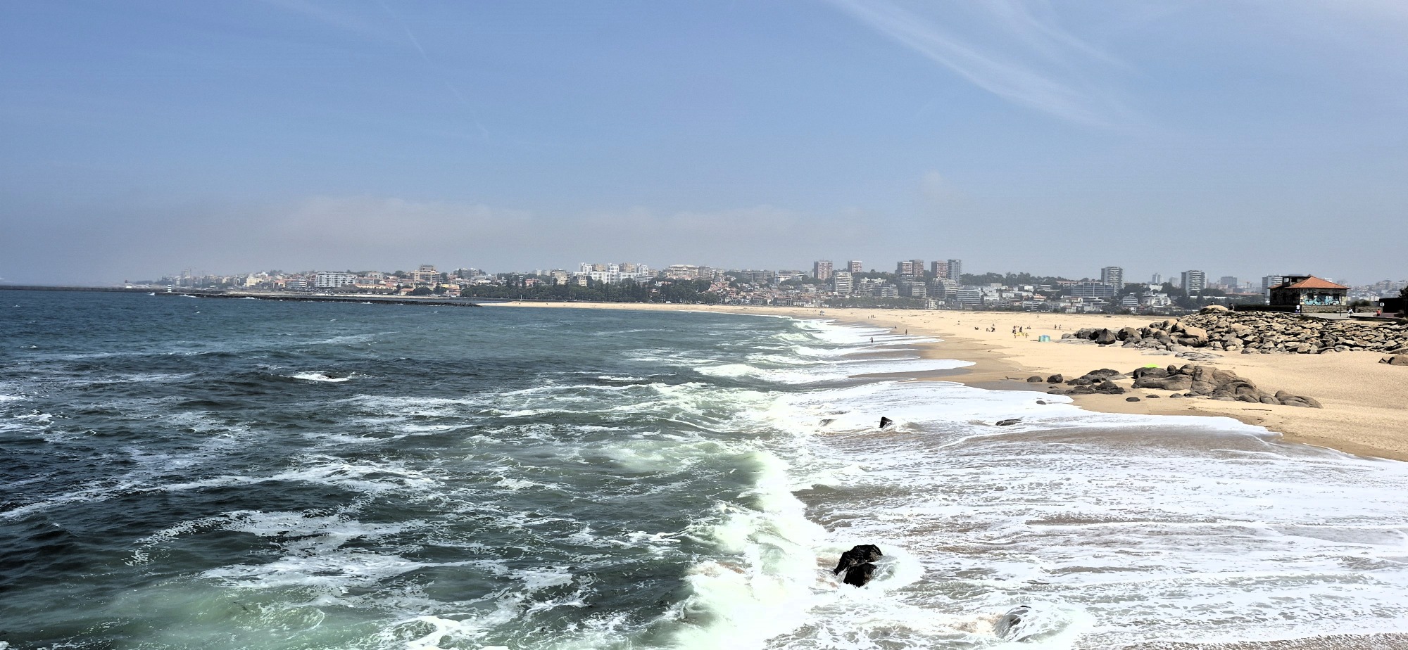 La Praia de Cabedelo no es gran cosa, pero al otro lado del espigón está la Praia do Rodanho, con forma de herradura y varios kilómetros de largo. Al ser playas bastante urbanas, Ekhi no puede entrar, así que me dedico a recorrer el paseo y descubro que, junto a la escuela de surf, hay unas duchas que, aunque son de agua fría, permiten el uso de jabón y tienen vestuario. Aprovechamos para lavarnos tranquilamente.