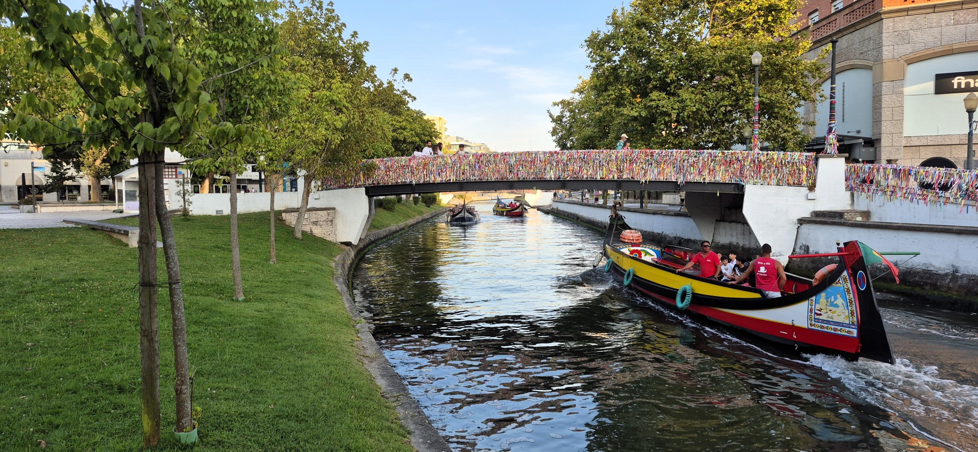 Aveiro y sus canales no nos han gustado especialmente, la ría de Aveiro es ua serie de marismas, lagunas saladas y canales naturales, que unido al uso de los Moliceiros, embarcaciones tradicionales, con grandes proas pintadas de vivos colores y que se usaban para recoger algas y hoy llevan turistas, han hecho que a esta ciudad se le conozca como la Venecia portuguesa.