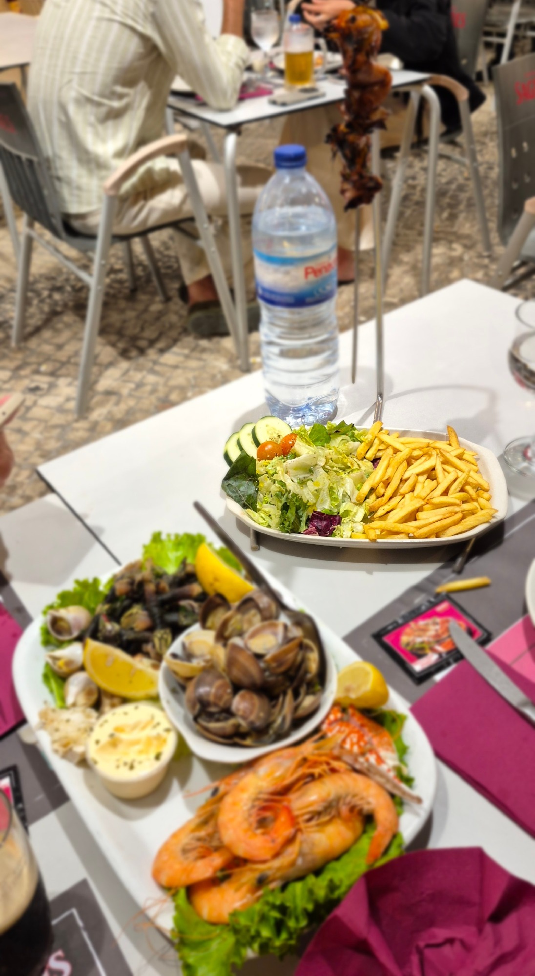 En cuanto a su gastronomía, Portugal ofrece muchas opciones para todos, destacan sus diversas formas de preparar el bacalao, los arroces de pescado y el marisco. Pero es fácil comer en cualquier sitio sin necesidad de entrar en restaurantes. Además de la amplia oferta de comida preparada en supermercados, os doy un consejo sencillo: buscad siempre el "prato do dia" o la clásica bifana. Con el primero, por unos 5-8€ tienes un plato con proteína, arroz y verduras; con el segundo, un típico bocadillo redondo, generalmente de cerdo marinado o a la parrilla, pero cada vez más con variantes modernas, incluso de salmón. En general, comer en Portugal sigue siendo más barato que en el resto de la península.