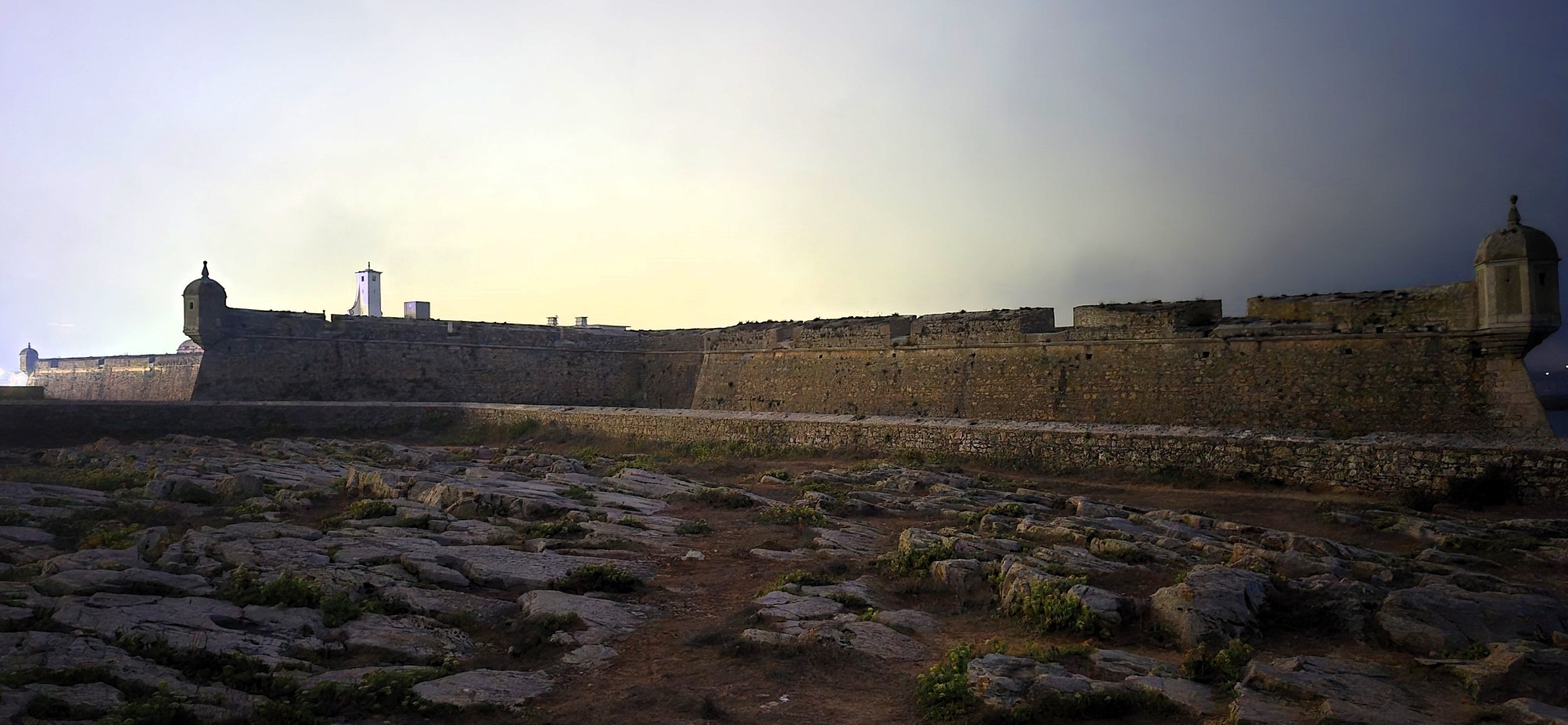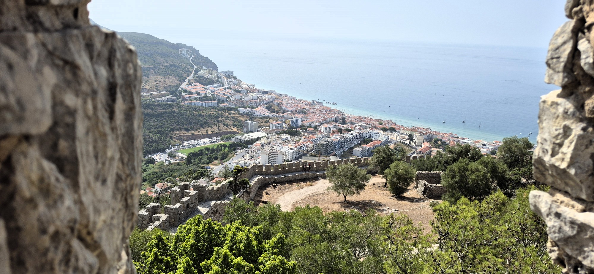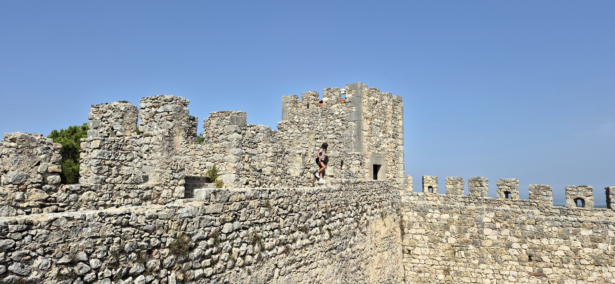 Nos vamos a ver el Castelo de Sesimbra. Es un castelo de origen morisco y pasó varias veces de manos entre cristianos y musulmanes, ampliándose cada vez, hasta la conquista final en el 1200, dándose un fuero a la población, que creció dentro de las murallas. A partir del siglo XV la desaparición del peligro hizo que la población fuera abandonando el castillo para instalarse en el puerto, abajo en la bahía.
