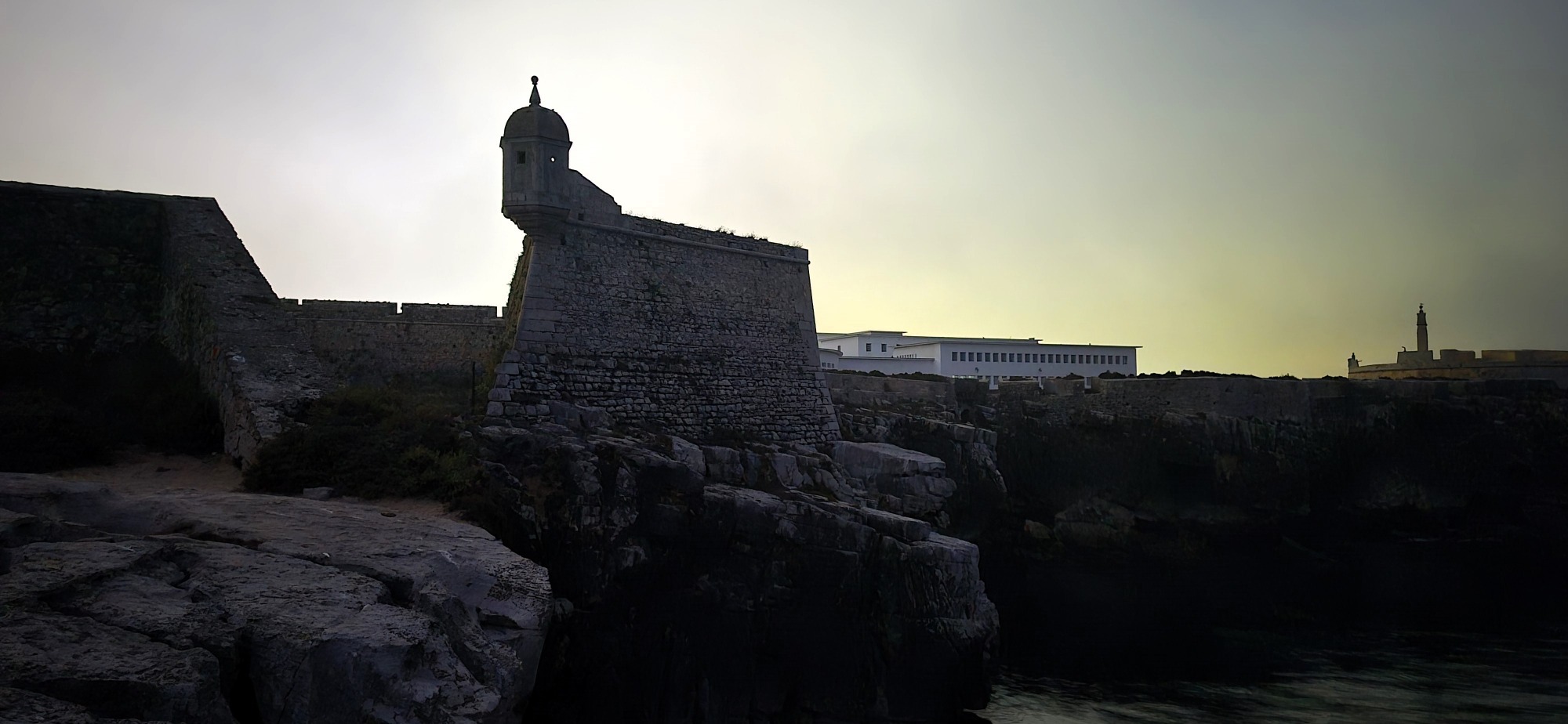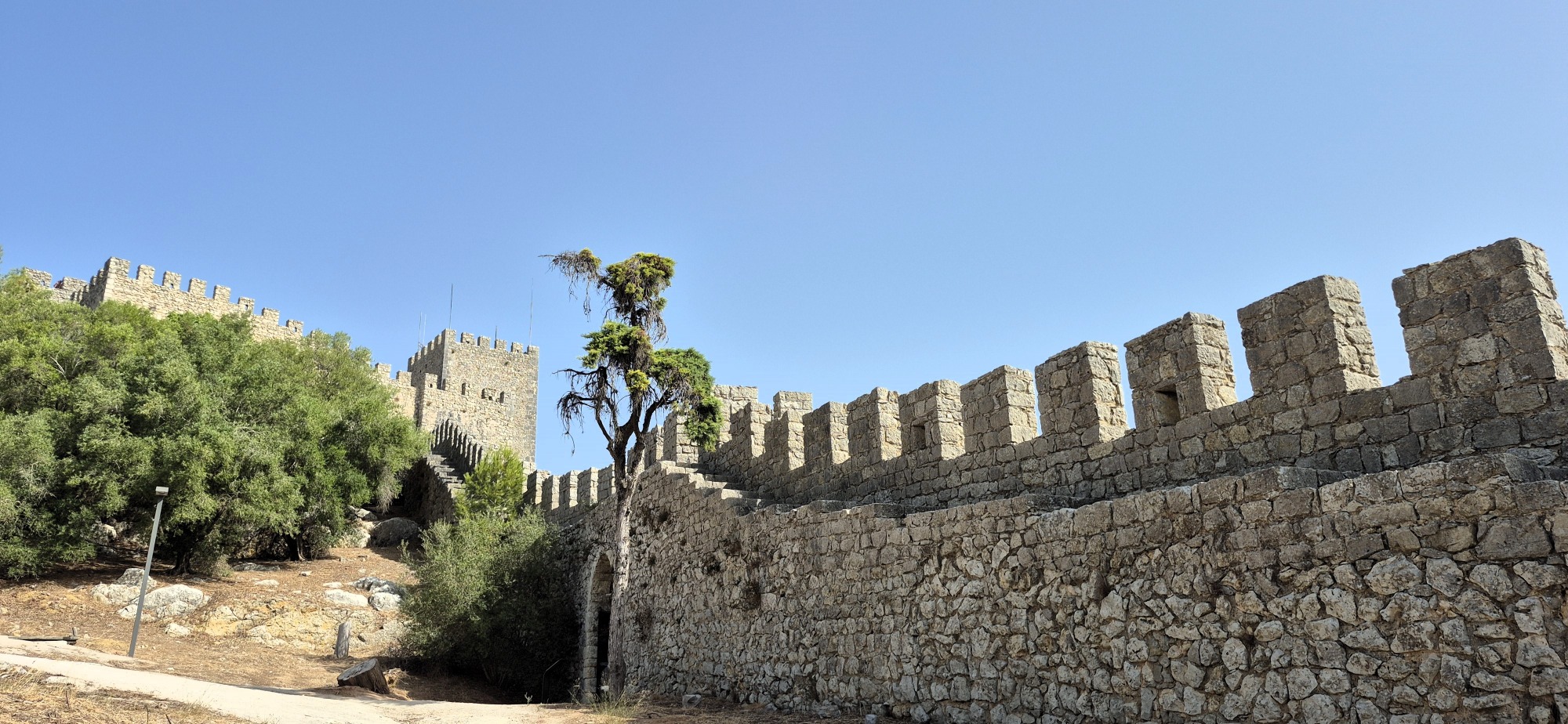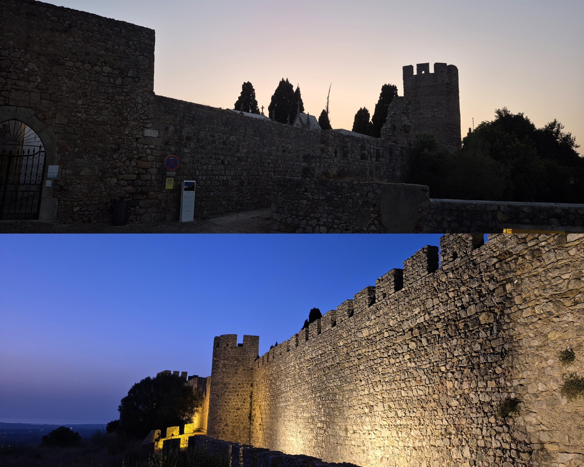 Nos vamos a ver el Castelo de Sesimbra. Es un castelo de origen morisco y pasó varias veces de manos entre cristianos y musulmanes, ampliándose cada vez, hasta la conquista final en el 1200, dándose un fuero a la población, que creció dentro de las murallas. A partir del siglo XV la desaparición del peligro hizo que la población fuera abandonando el castillo para instalarse en el puerto, abajo en la bahía.