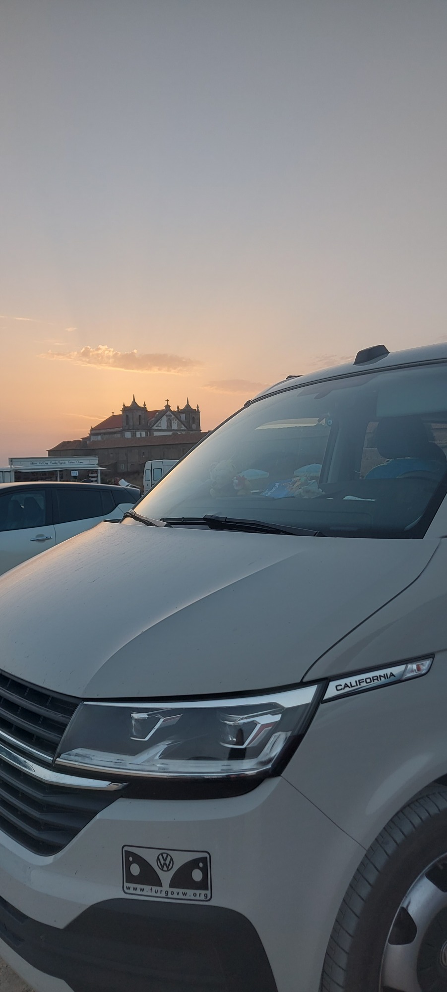 Volvemos a la furgo y aunque hemos llegado aquí porque se supone que detrás de la hamburguesería hay dos plazas reservadas para camper, la mayoría de los vehículos que hay aparcados en batería enfrente de la muralla son campers, muchas portuguesas con intención de pernoctar ahí. Y como donde fueres haz lo que vieres pues nos quedamos a pernoctar.