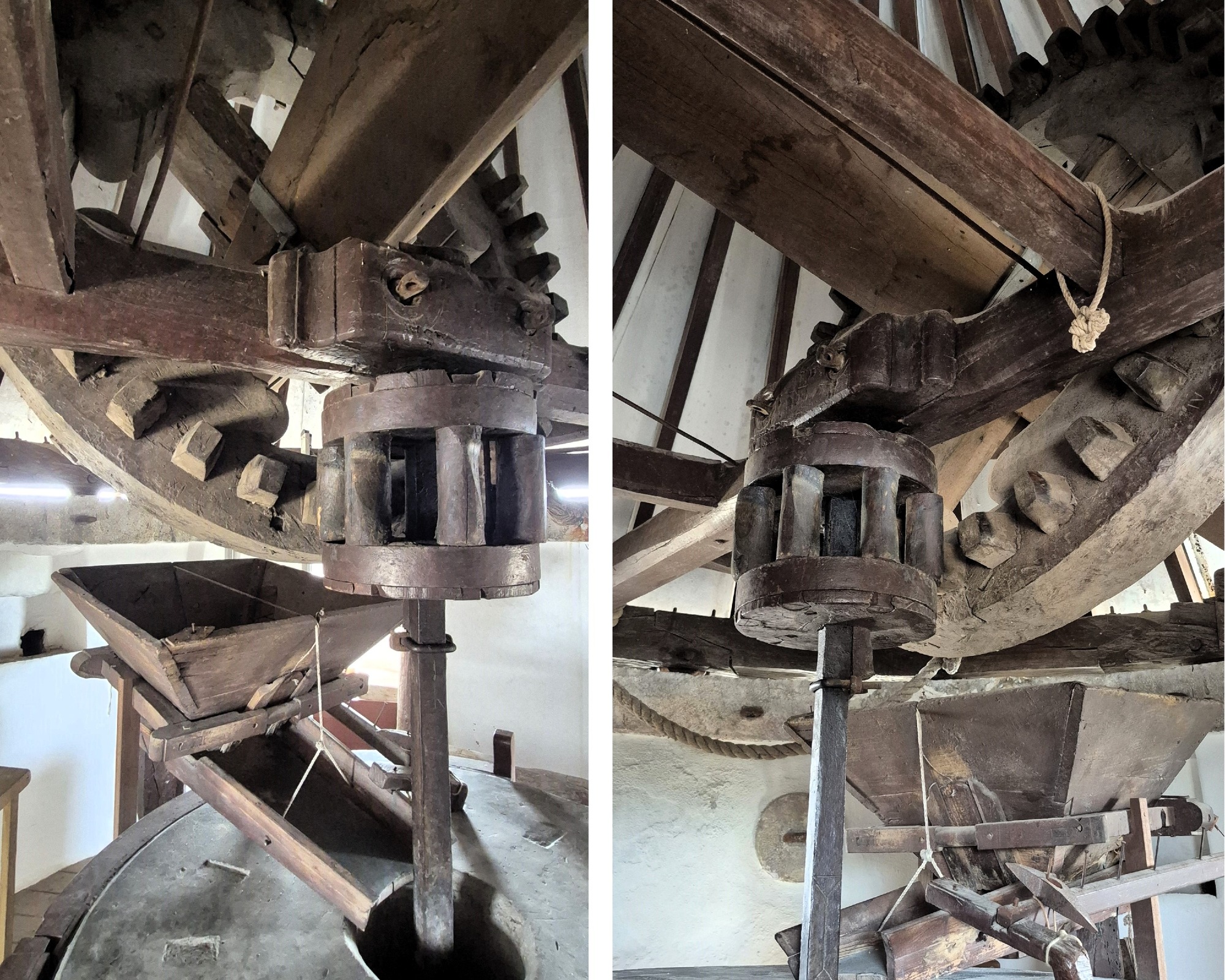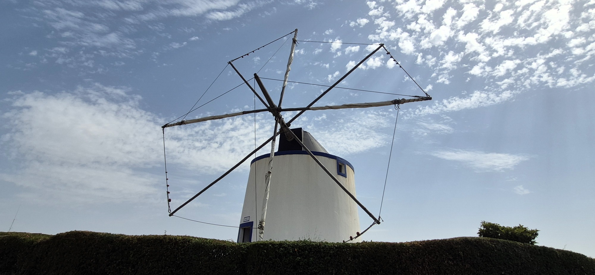 De vuelta a Santiago do Cacém, visitamos también el molino de viento municipal del pueblo. La persona que lo enseña es un señor mayor del pueblo que lo hace con mucho gusto y alegría, a pesar de solo hablar portugués. Es de esas personas que la vida no les dio una educación formal, pero rebosan inteligencia y curiosidad. Le cuesta escribir; su trazo es irregular, casi infantil, pero tiene un brillo especial en los ojos y un enorme deseo de compartir lo que sabe. Sabe decir eskerrik asko y nos pide que le deletreemos algunas frases más.