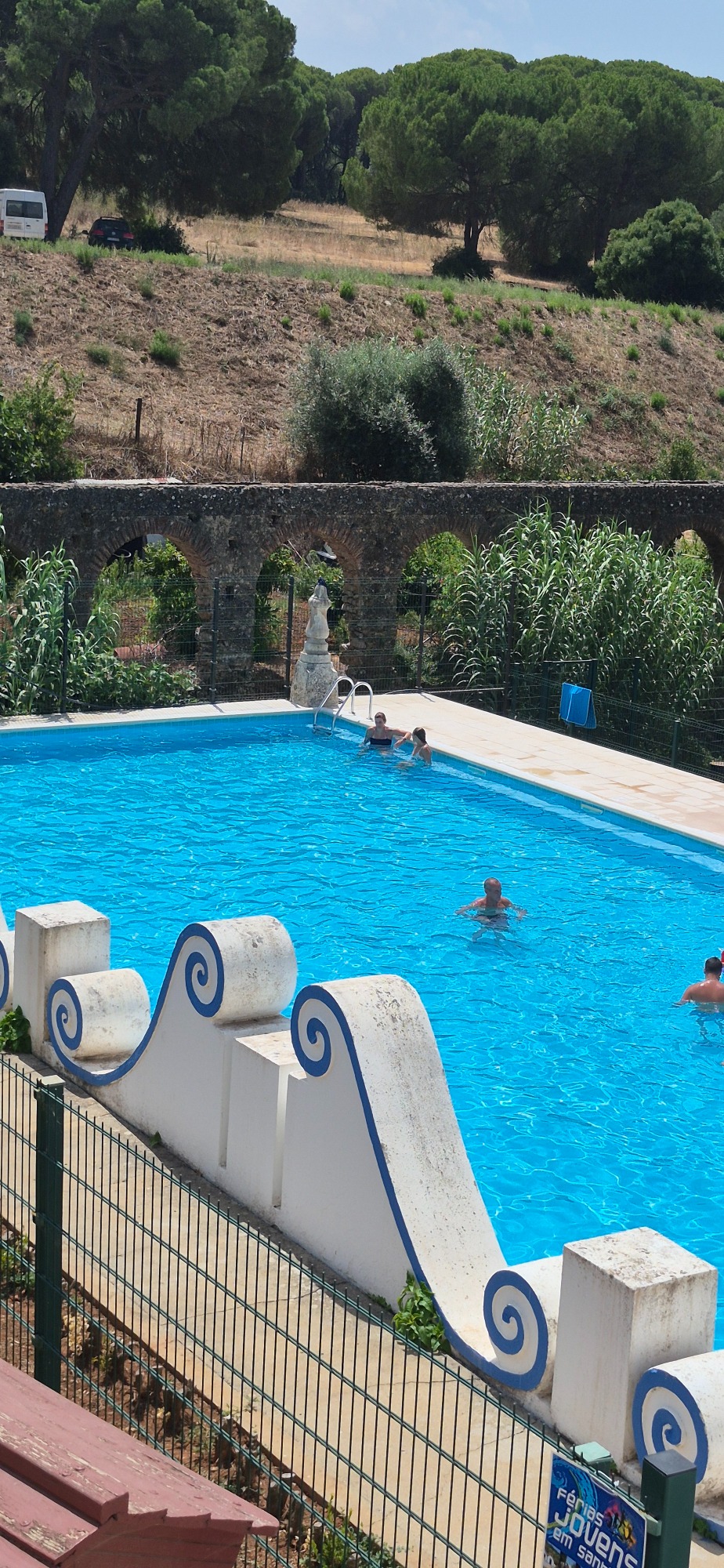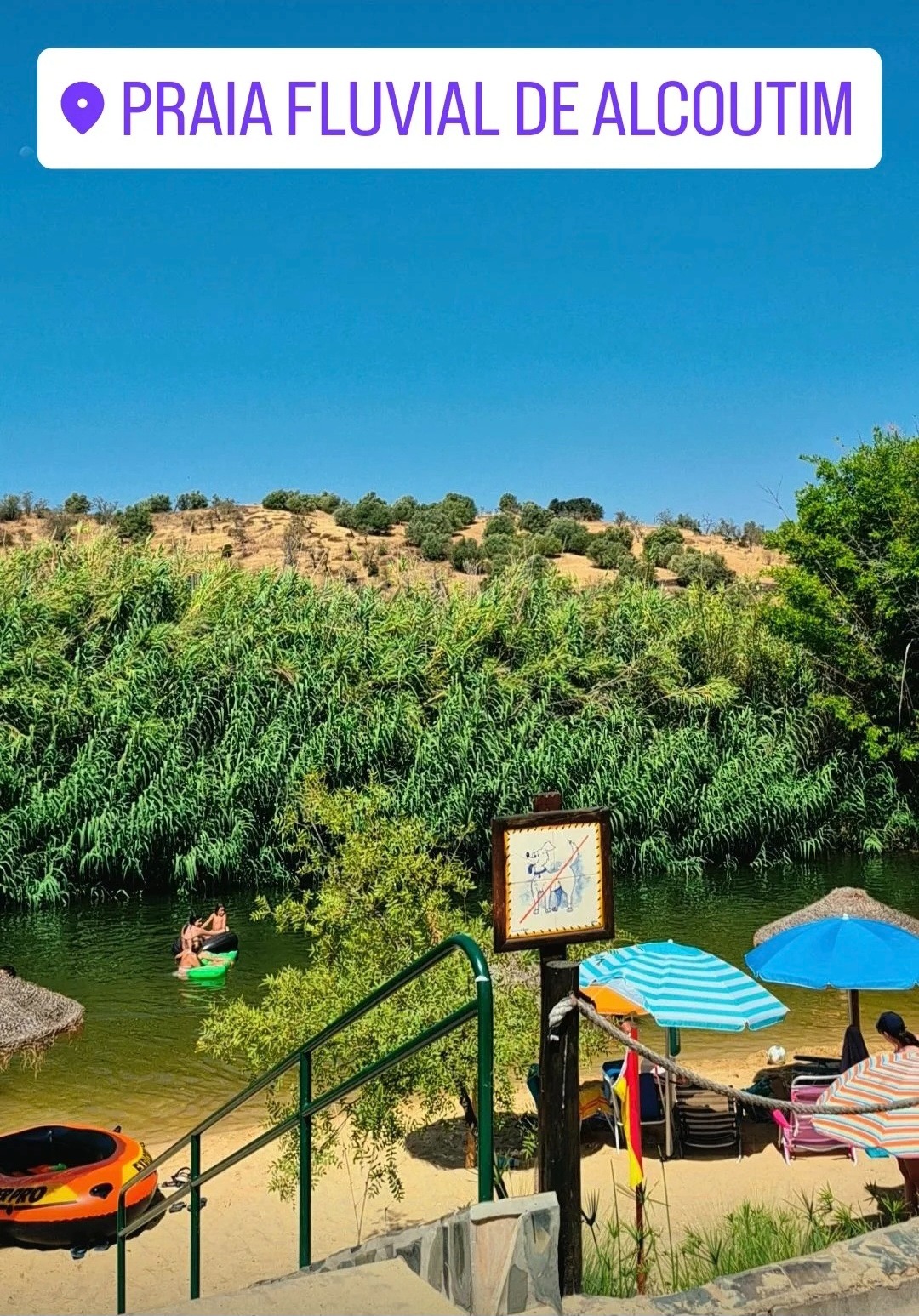 Se nota que ya estamos al sur de Lisboa. El calor está siendo insoportable con más de 40 grados. Así que buscamos un área que ofrezca fresquito y acabamos en Sāo Tiago do Cacen, que ofrece un área gratuita junto a unas piscinas gratuitas.