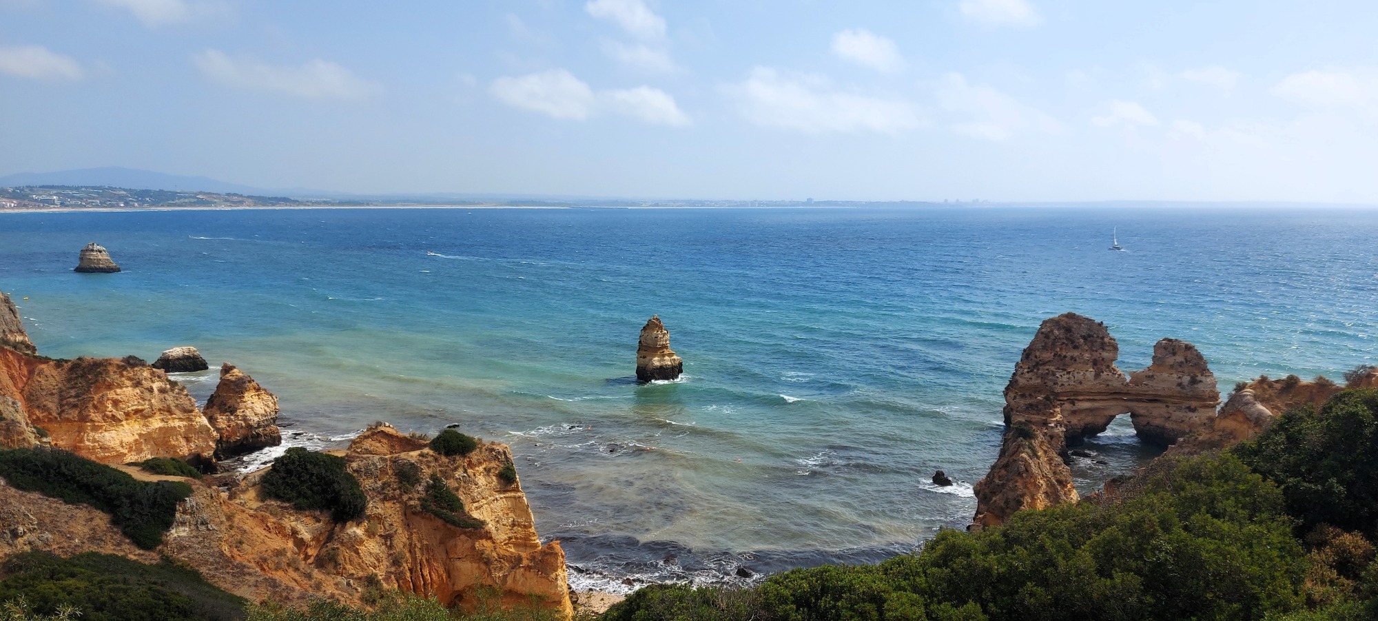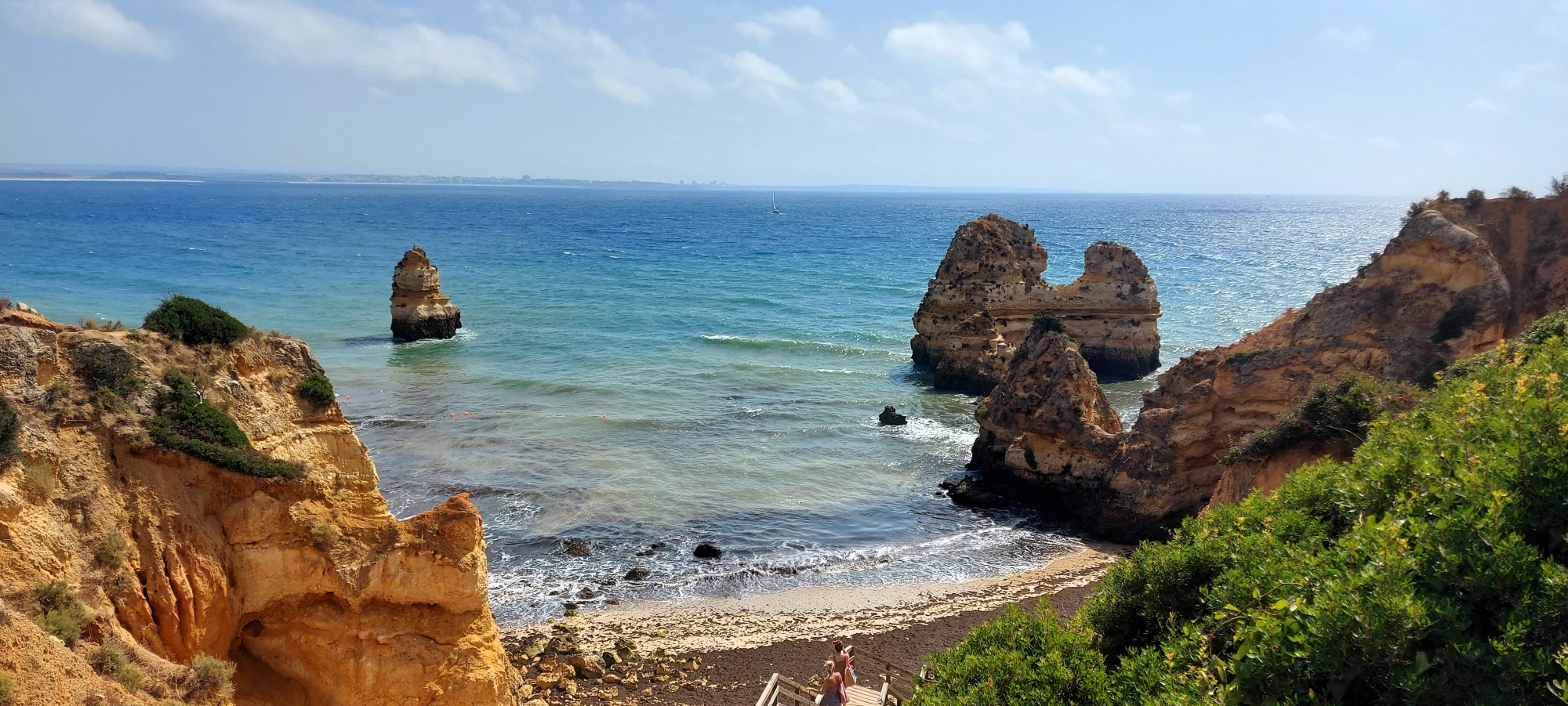 Nuestra idea era visitar Ponta da Piedade, es una cala preciosa, fuera del centro histórico, pero las urbanizaciones ya han llegado a este paisaje natural. Los acantilados son de caliza y arenisca. La erosión del océano, el viento y la lluvia han esculpido un paisaje con formaciones únicas, arcos marinos y rocas en equilibrio casi imposible. Es un poco como la playa de las catedrales gallega, pero en este caso se explora mejor desde el agua.