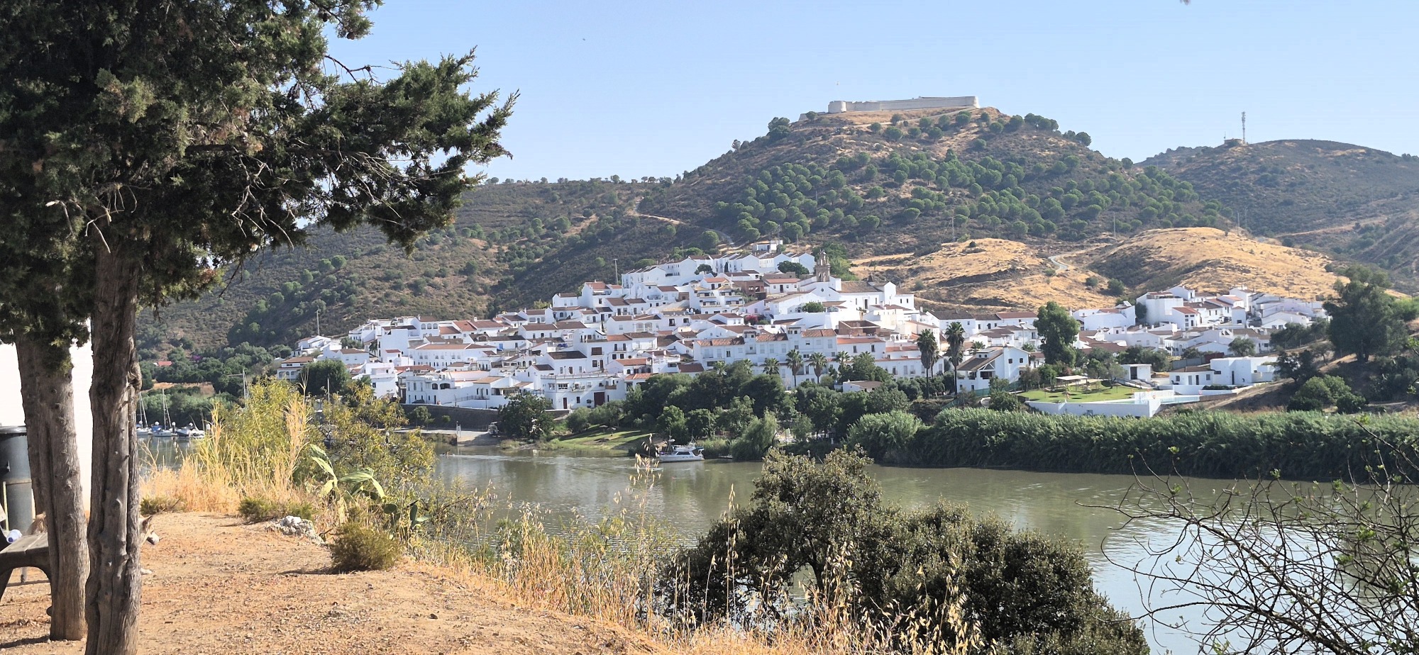 Aproximadamente en este punto dejan de notarse las mareas en el Guadiana, el río se convierte en ría a partir de este punto, por lo que ya en la antigüedad tuvo una gran importancia comercial, ya que las embarcaciones debían detenerse durante horas, esperando el cambio de marea, para poder descender hasta el mar. Con el paso de los siglos el Guadiana se convirtió en frontera natural entre Portugal y España y muchos de los habitantes de la zona, en ambas orillas, se dedicaron al contrabando, intercambiando gracias a las barcas lo que había en uno de los lados por lo que faltaba y viceversa. Esto hizo que aunque en las poblaciones hubiera dos castillos fortalezas observándose continuamente, la población tuviera lazos de amistad e incluso familiares a ambos lados de la frontera.