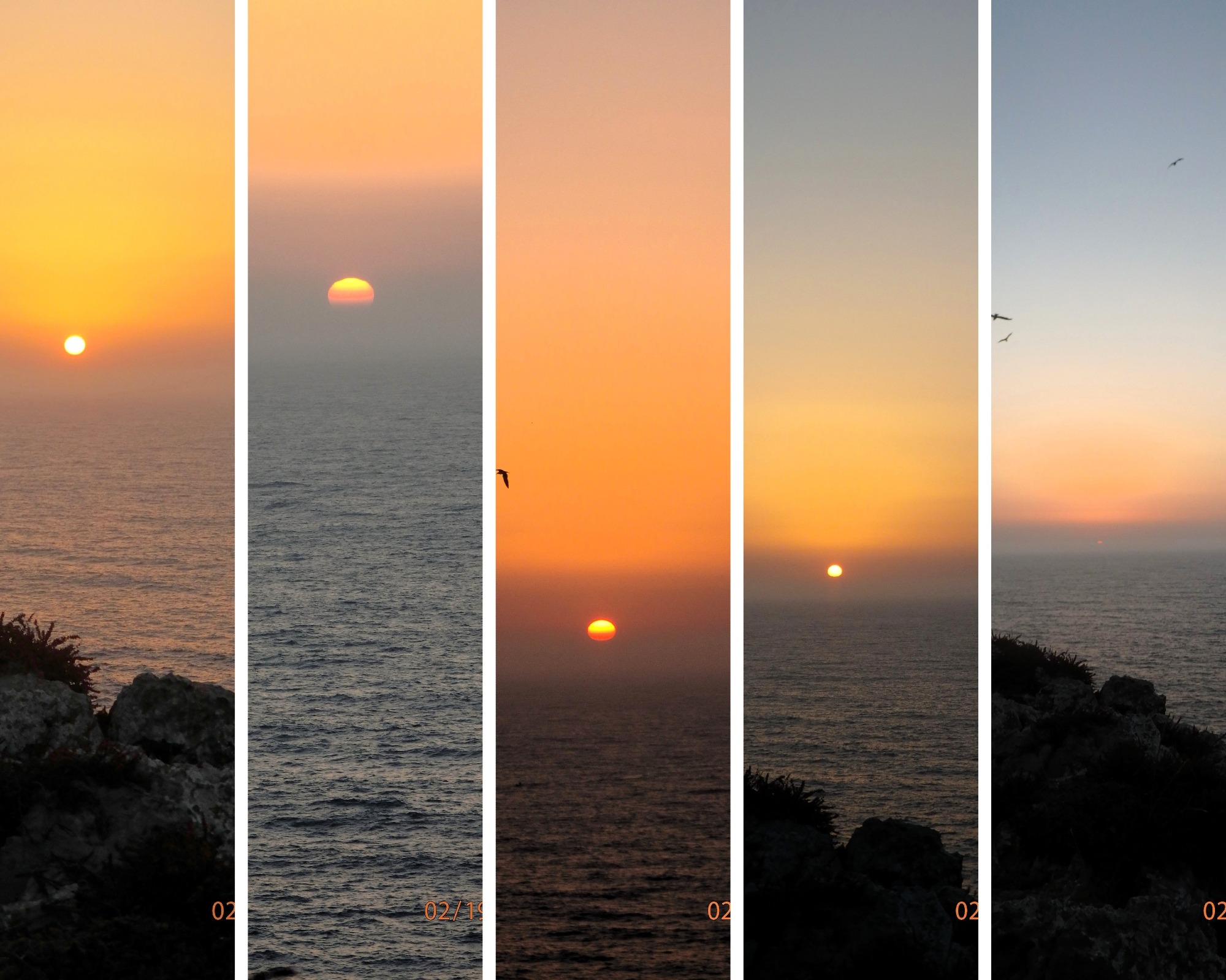 Después de tomarnos algo en una terraza de Sagres decidimos ir a ver la puesta de sol al cabo San Vicente, conocido como Sacrum Promotorium por los romanos y de dónde viene el nombre actual del lugar. Vamos con tiempo para disfrutar de la puesta del Sol. Hace más de 20 años estábamos aquí cuatro hippies y unos cuántos turistas despistados, hoy la experiencia ha sido tomada por el turismo de masas. Cientos de personas en caravana, aparcando en los márgenes del camino, para hacer todos la misma foto que se podía hacer en el cabo anterior, creo que si alguna vez volvemos al Algarve, no volveremos a ver nunca el atardecer en este cabo. Cualquier otro punto de la costa portuguesa te ofrece una experiencia mejor. Hoy está lleno de foodtrucks que venden bebidas y comida rápida para las hordas de turistas que venimos aquí a ver el atardecer. La vuelta también es estresante, pues todos queremos marchar tras el final del espectáculo. En estos momentos comprendo que prohibir la pernoctar libre ha permitido que el Parque Natural do Sudoeste Alentejano e Costa Vicentina haya podido escapar en cierta medida de la masificación que provocamos los humanos.