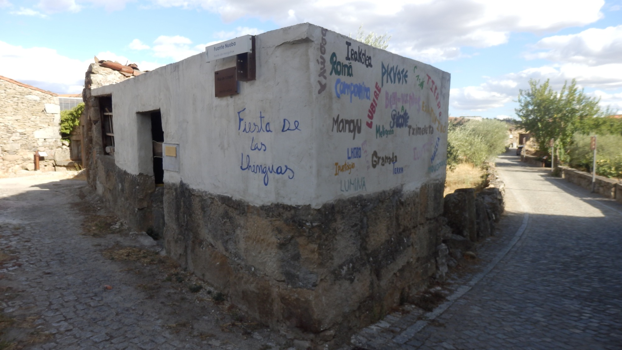 En Picote, parece ser que se celebra la "Fiesta de las Lhenguas" y esta barraca da fe de ello. Encontramos escritas varias en euskera también. Qué ilu!!  ;D