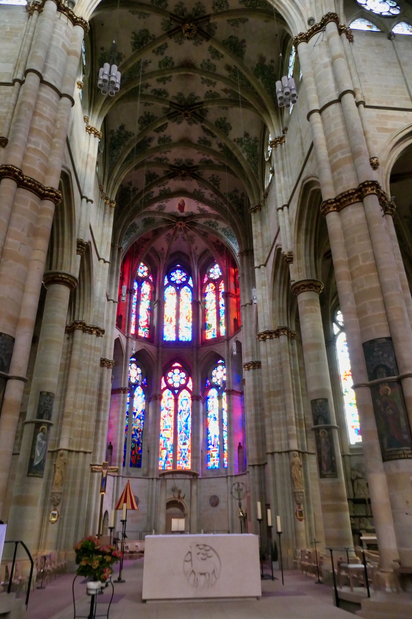 Y justo detrás de esta plaza se llega a la plaza de la catedral, donde se hayan la catedral de San Pedro, considerada la iglesia más antigua de Alemania, y la basílica de Nuestra Señora (Liebfrauenkirche). Ambas forman parte del patrimonio de la humanidad de la Unesco. Pero, en lo que respecta a sus interiores, a nosotros nos gustó más la segunda, de estilo muy sobrio y nada recargado.