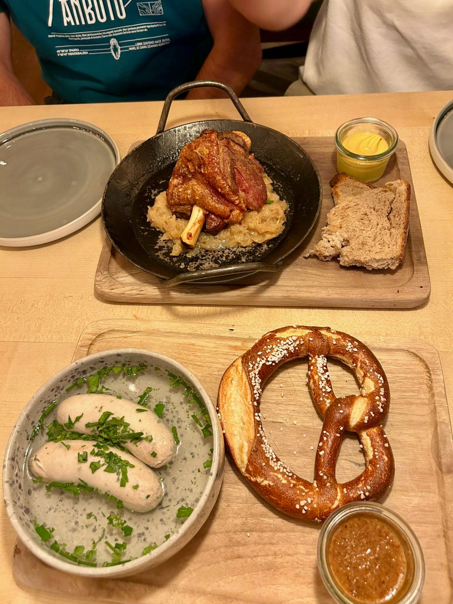 Y como tanta cultura cansa y da mucha sed, pues nos refugiamos en una agradable terraza, donde degustamos un par de cervezas alemanas. Si en Francia no perdonamos los cruasanes, en Alemania no vamos hacerlo con una de sus especialidades. Hay que ser respetuosos con las costumbres locales.