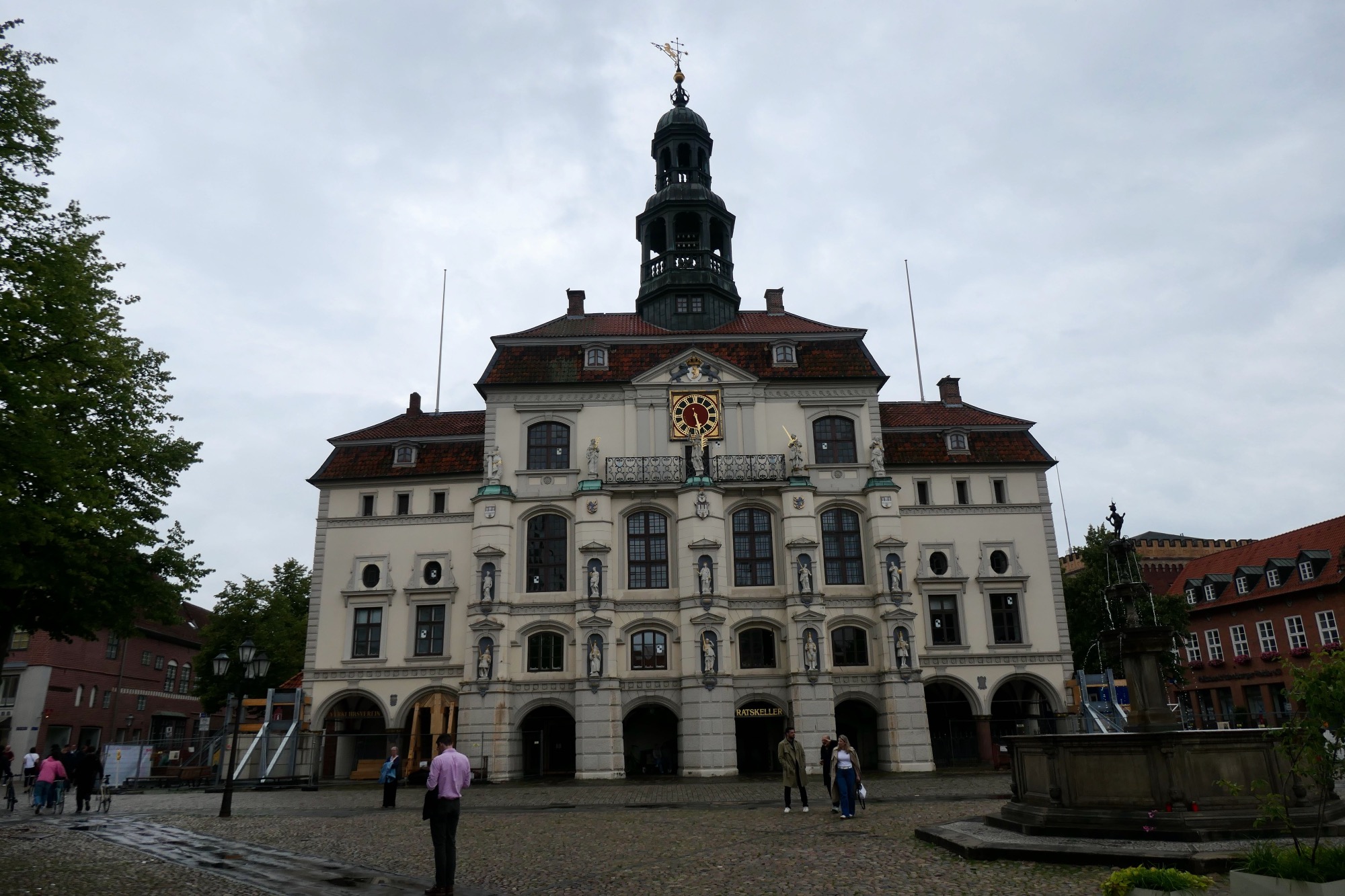 Cargamos todo en la furgo y nos despedimos de nuestros familiares para seguir nuestro camino hacia el norte e ir acercándonos poco a poco a la terminal del ferry en Hirsthals. Pero en lugar de subir rectos por Hamburgo, nos desviamos por carreteras secundarias para pasar por Luneburg y hacer una parada en esta pequeña ciudad que nos han recomendado.